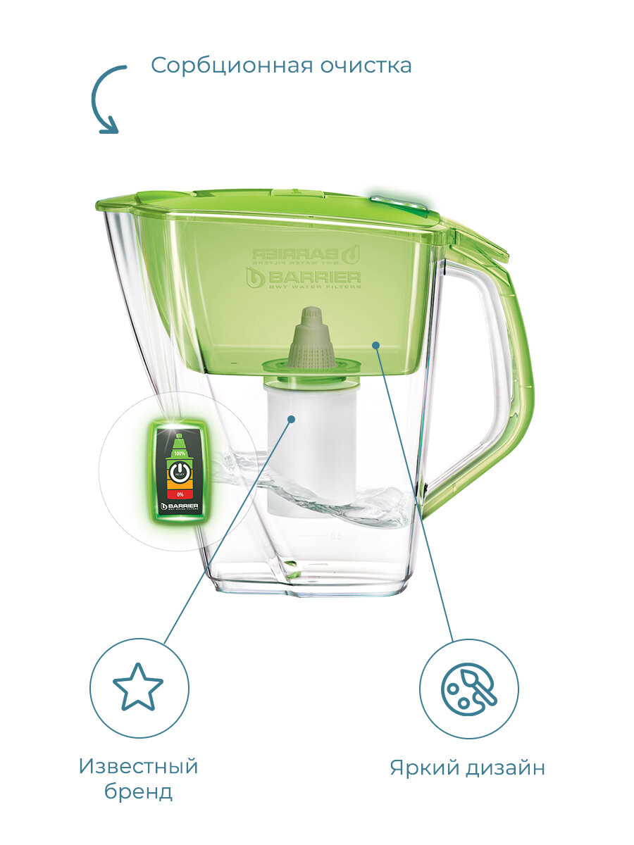 БАРЬЕР Прайм зеленое яблоко, XL, фильтр-кувшин для очистки воды, 4,2 л, индикатор Опти-Лайт