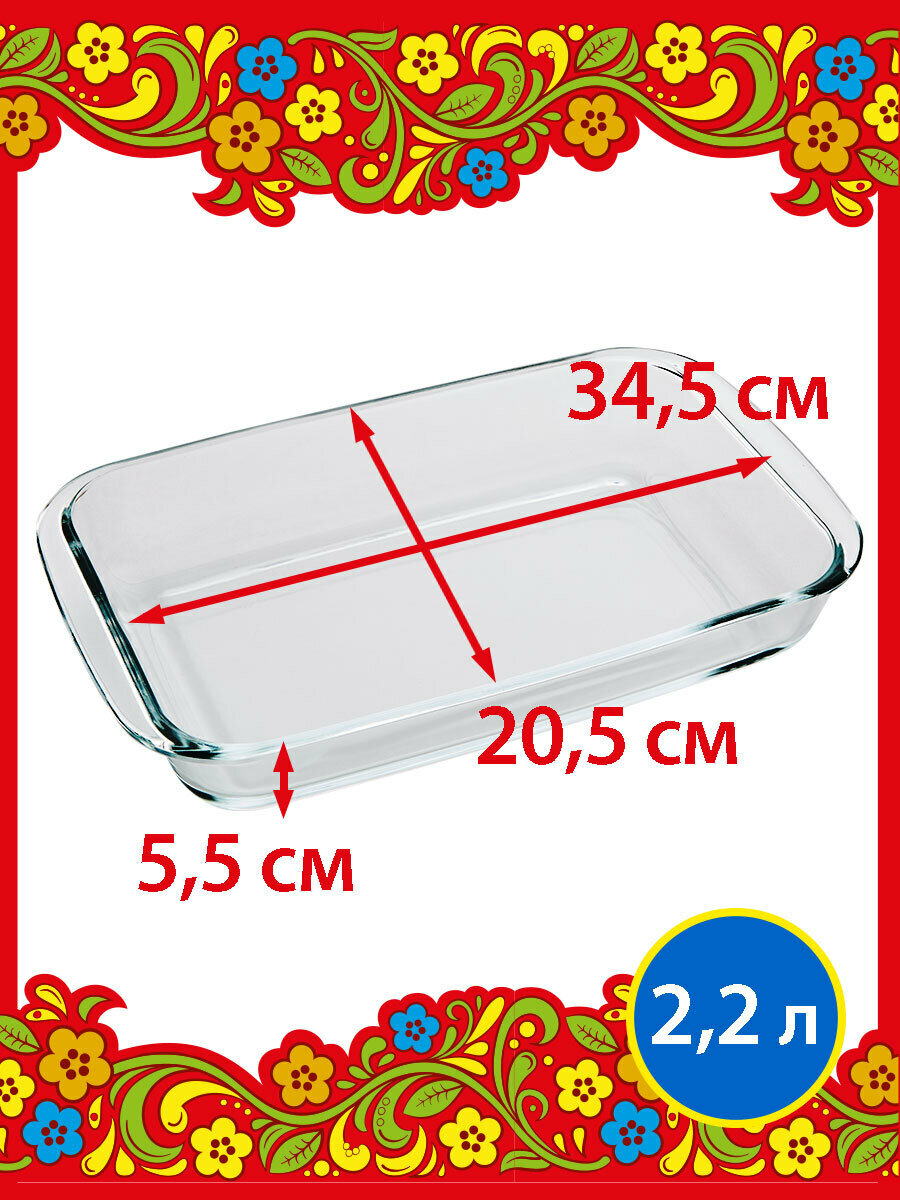 Форма для запекания прямоугольная 2,2 л 345х207х52 мм из термостекла РК-0015 "забава"