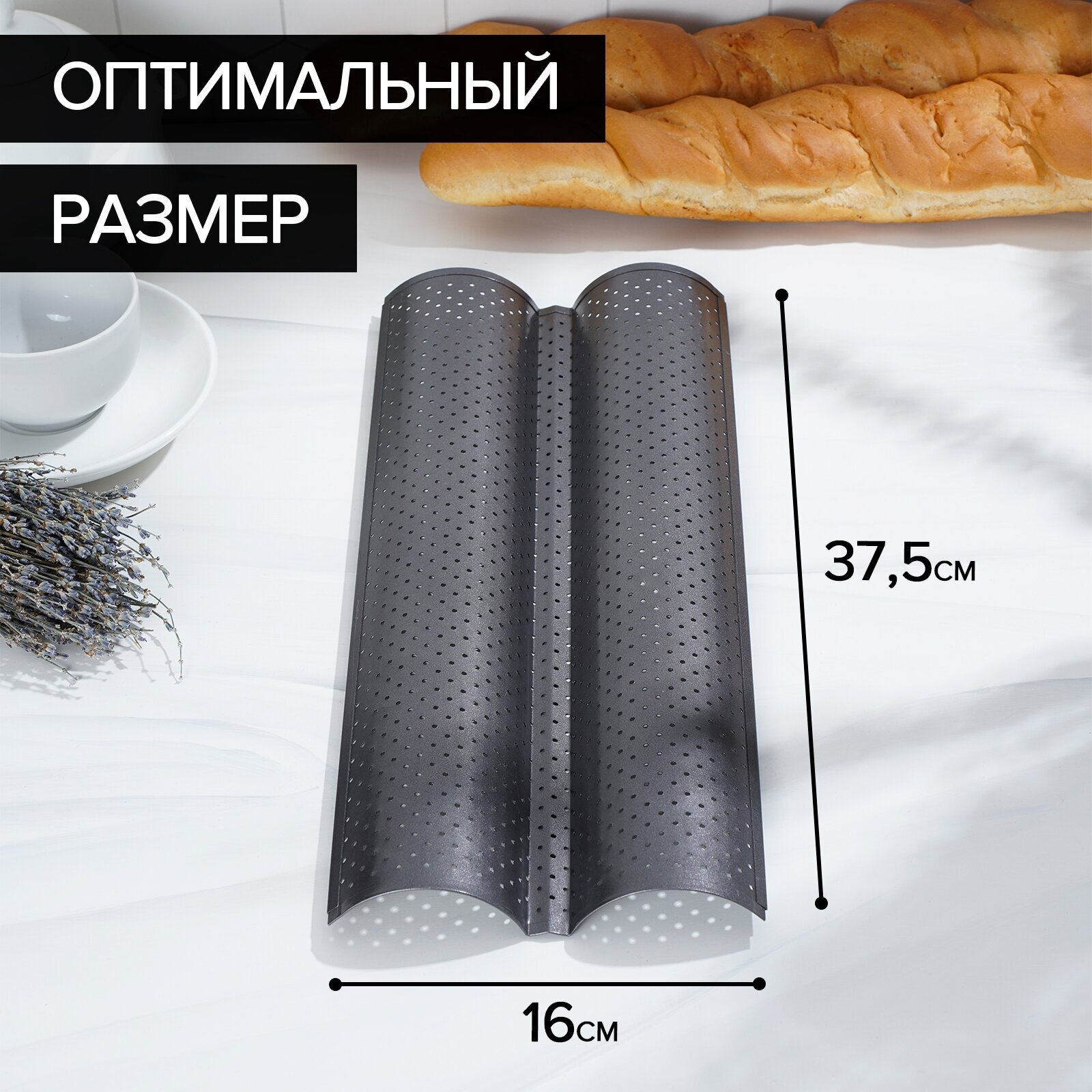 Форма для выпечки перфорированная Доляна «Хлеб. Багет», 38,5×16×2,5 см, антипригарное покрытие, 7887007