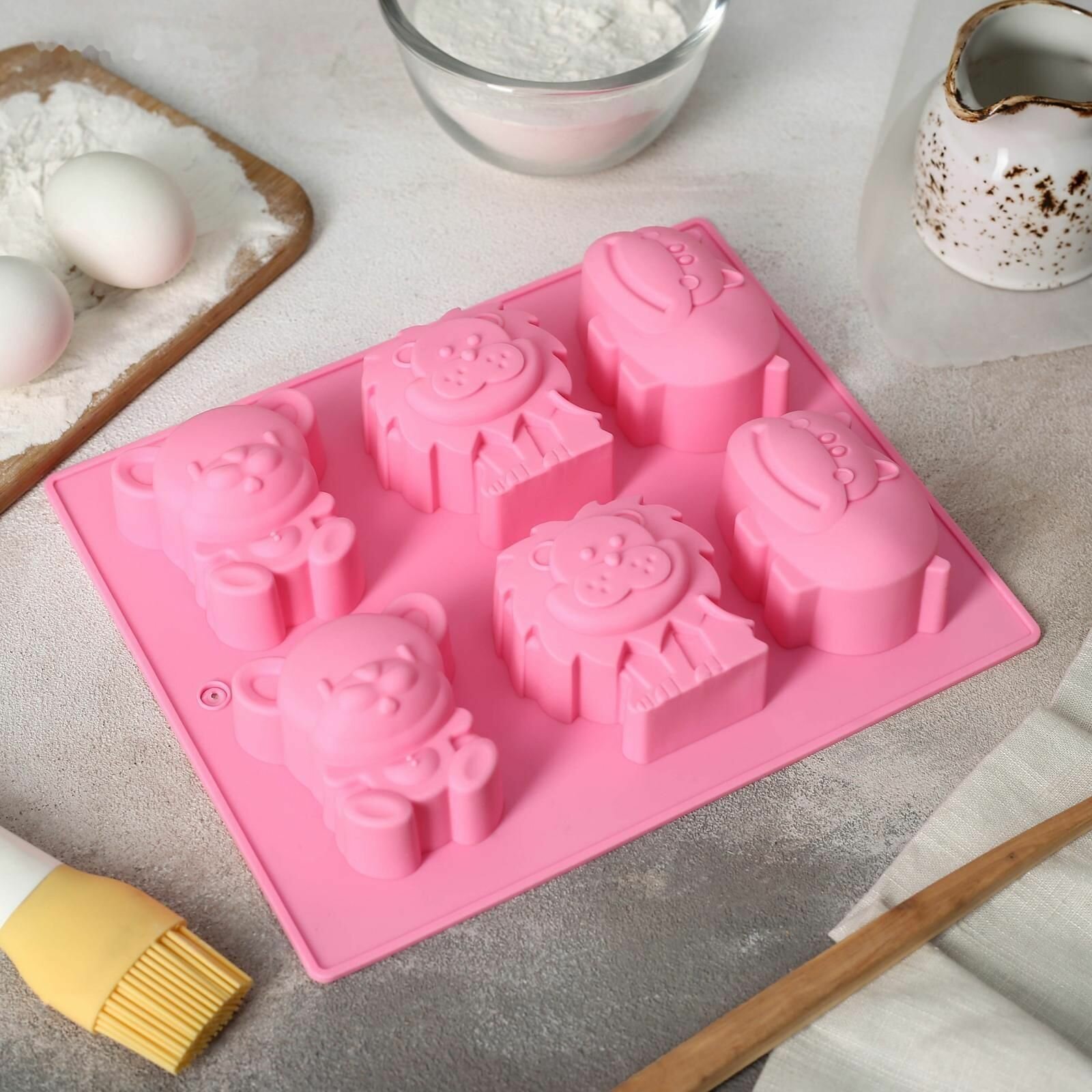 Форма силиконовая для выпечки Доляна «Животные», 20×16 см, 6 ячеек (6,5×4,5 см), цвет микс