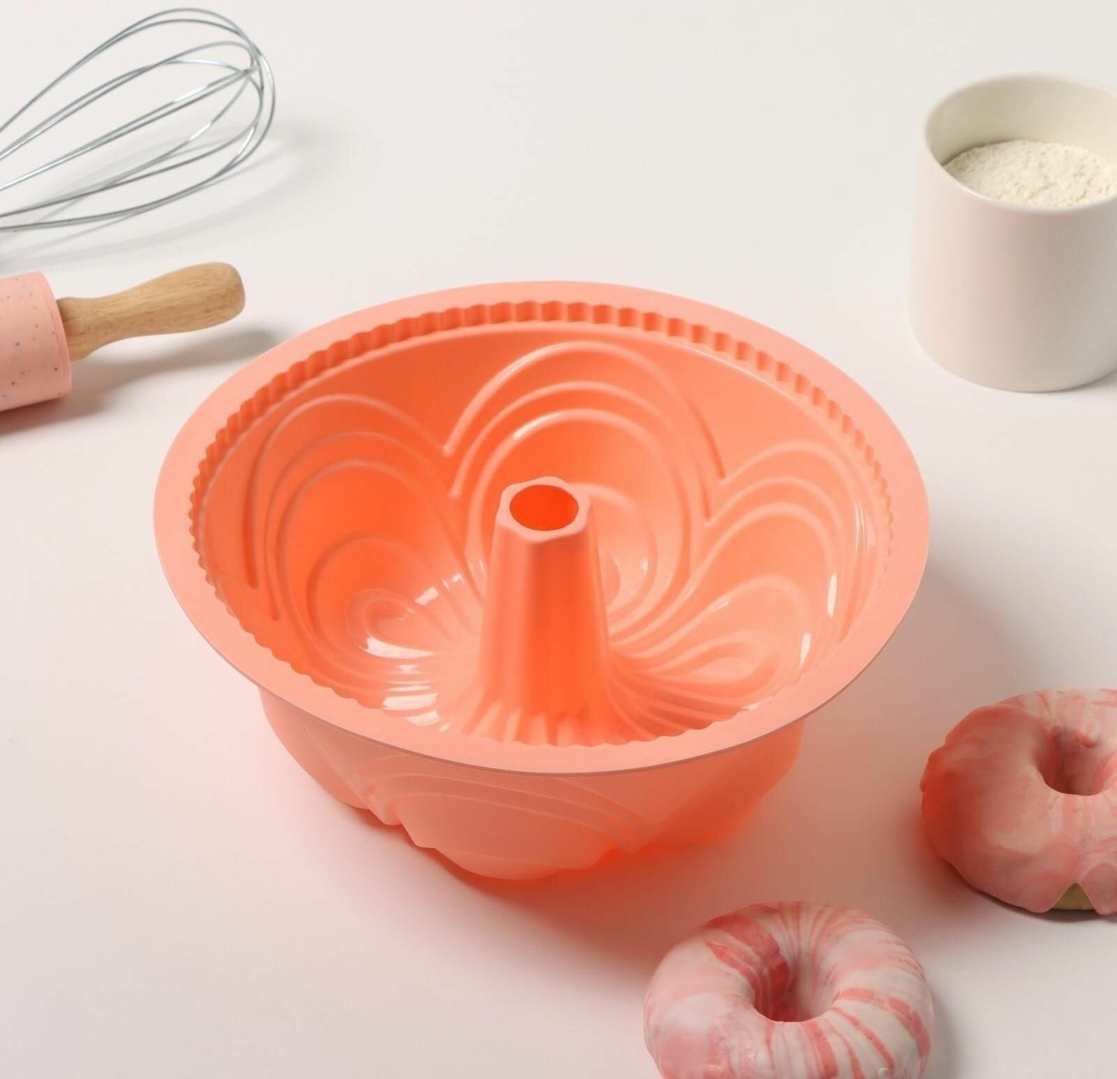 Форма силиконовая для выпечки Доляна «Немецкий кекс. Торжество» 22.5×8 см, внутренний диаметр 20см, цвет персиковый, 9842917