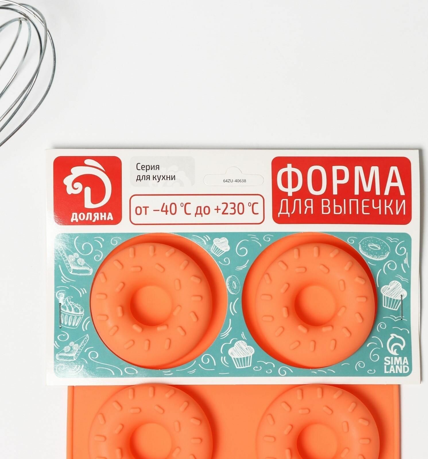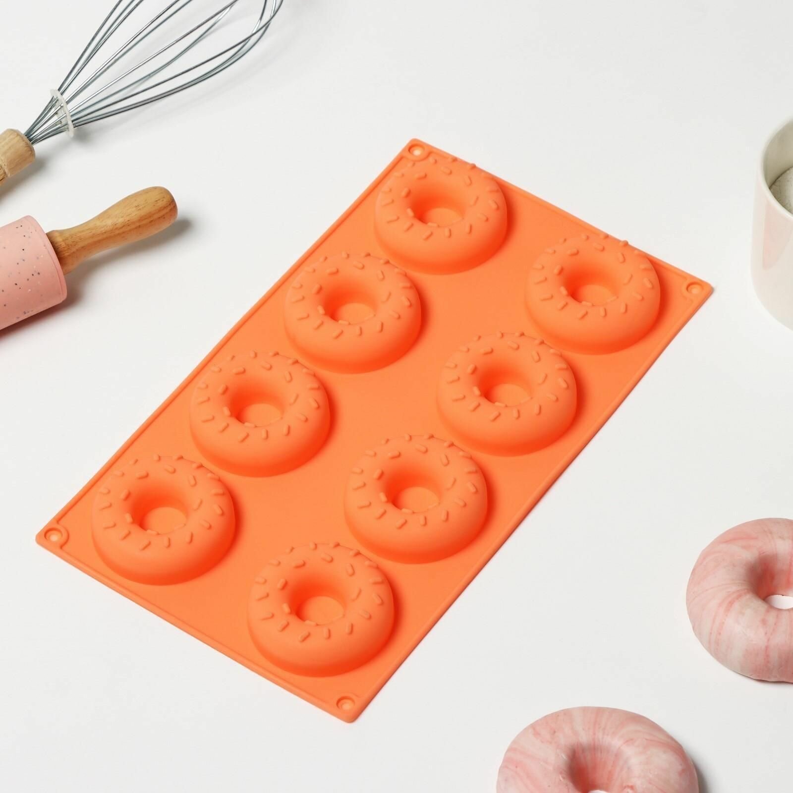 Купить Форма для выпечки силиконовая Пончики, 28,5x17 см, 8 ячеек, d 6,3 см