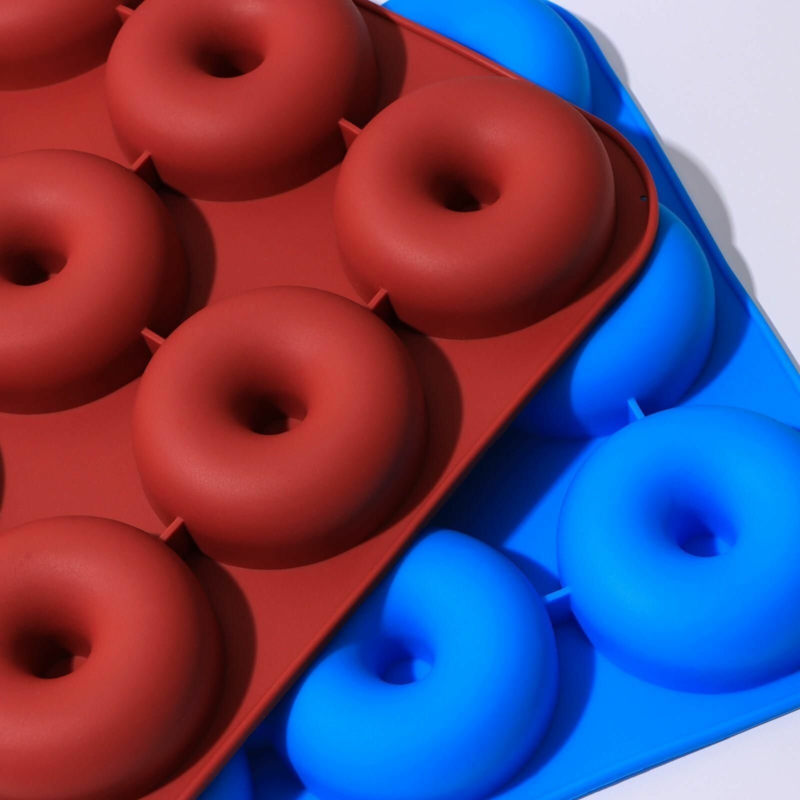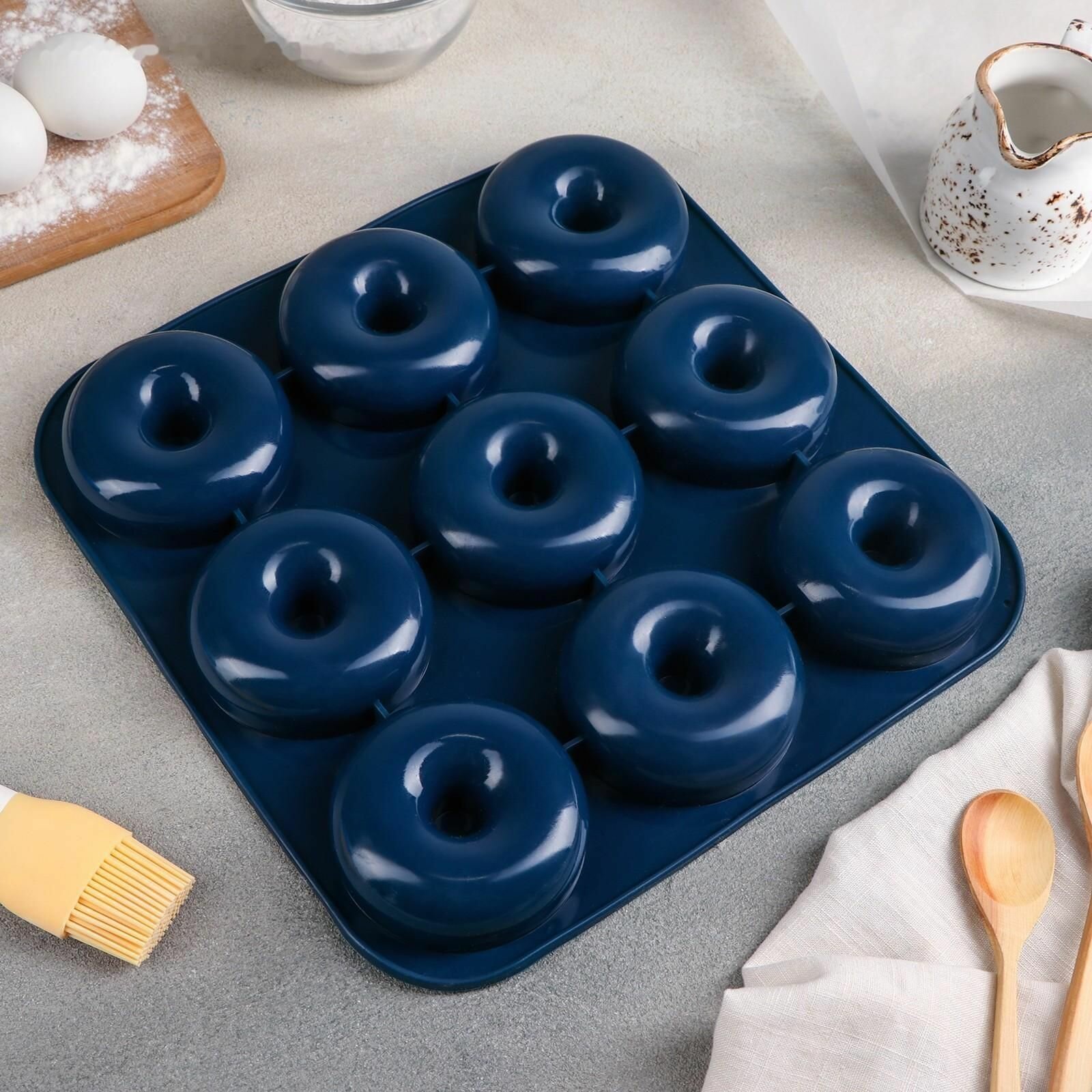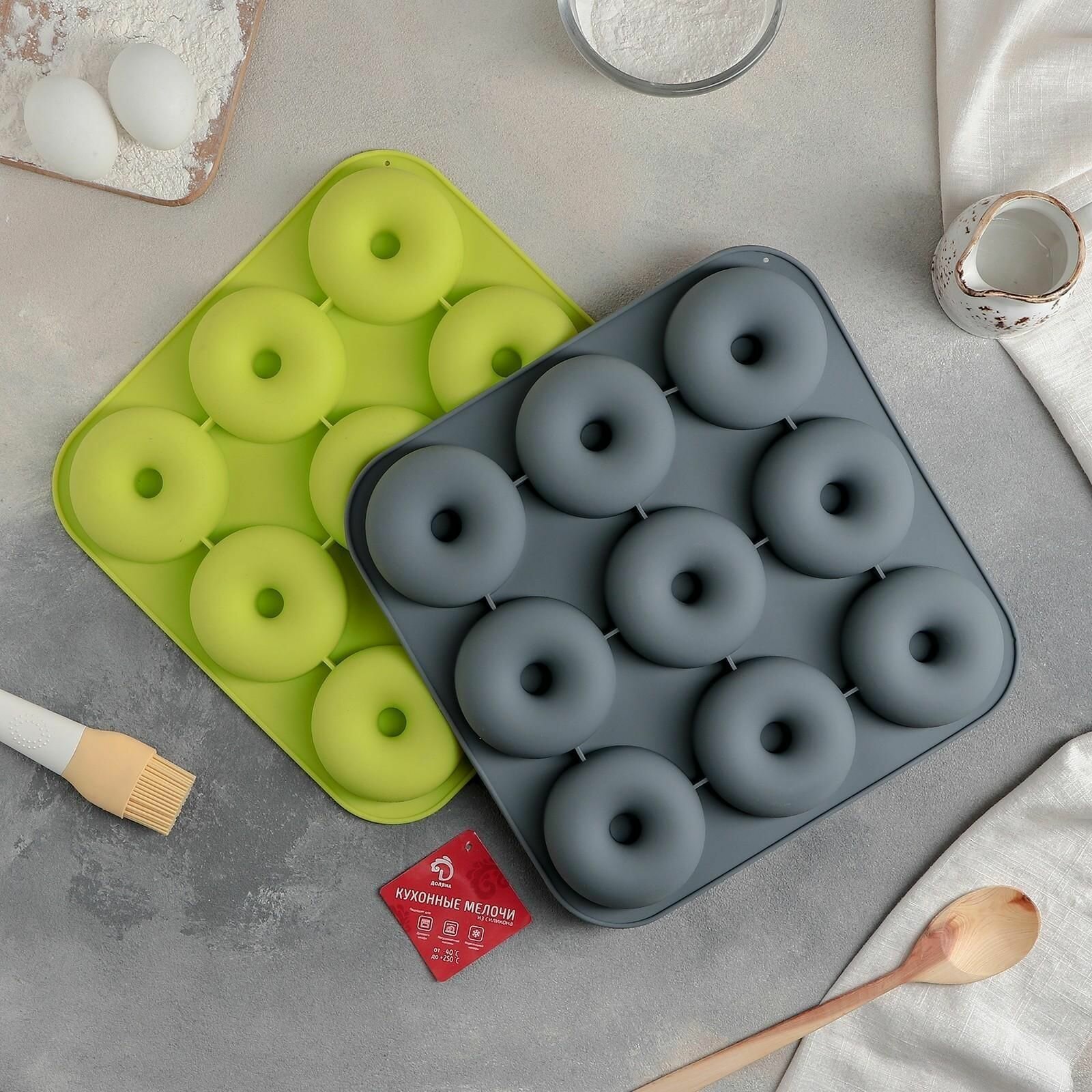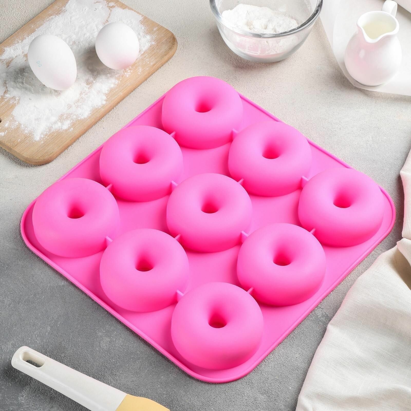 Купить Форма для выпечки силиконовая Пончик, 37x32x2,5 см, 9 ячеек, d 9 см