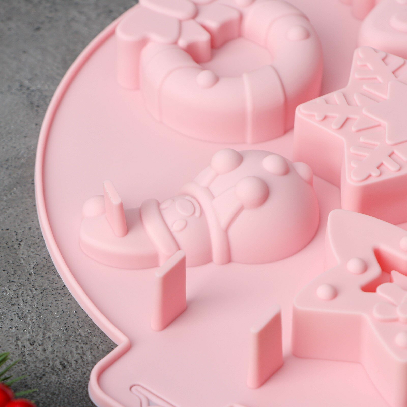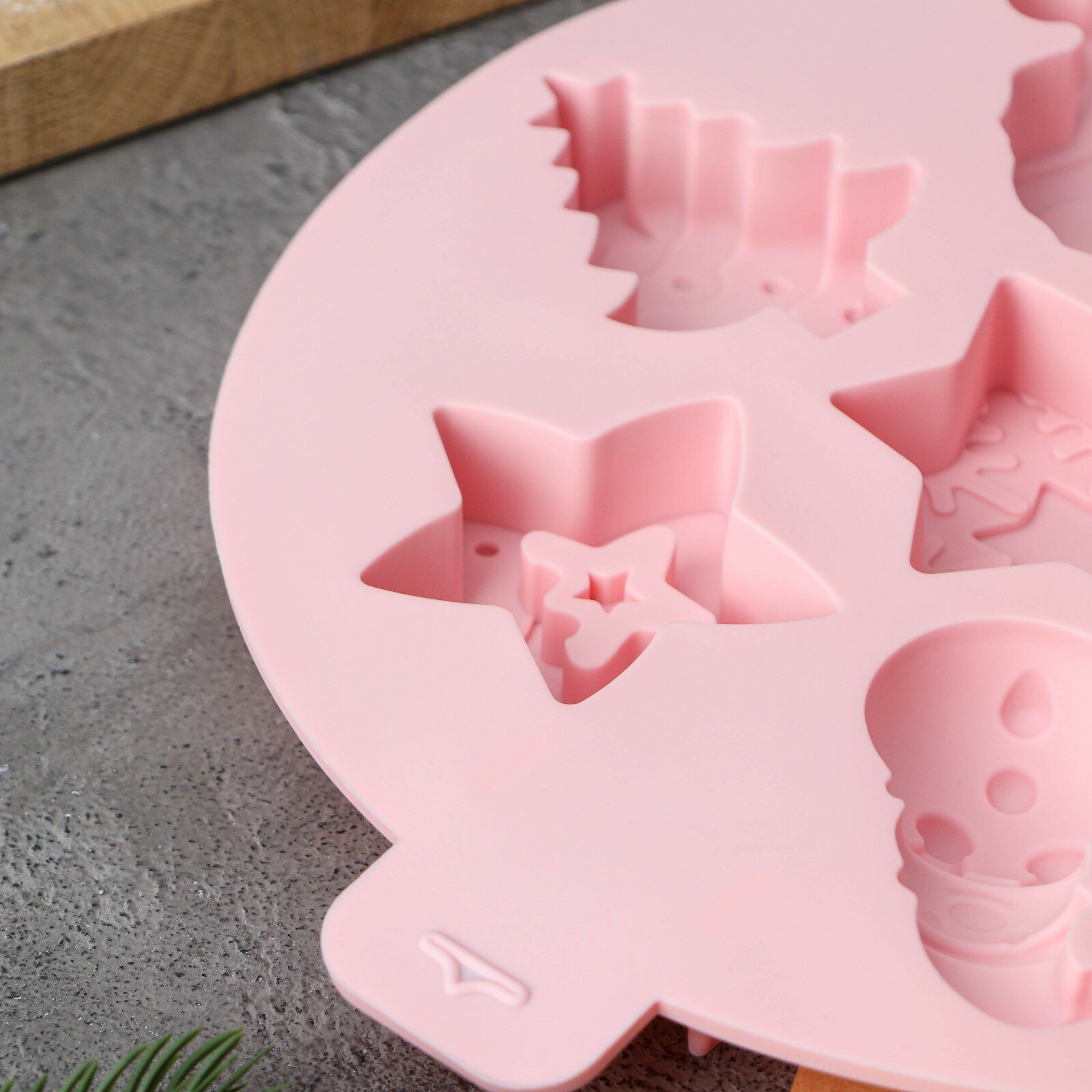 Форма силиконовая для выпечки Доляна "Новый год", 23х23х2,3 см, 7 ячеек, цвет розовый
