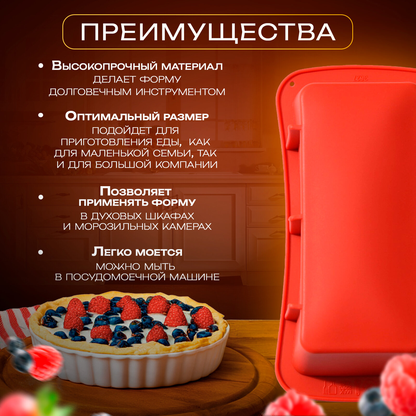 | Дополнительная информация | при аккуратном использовании изделие прослужит долгие годы. Рекомендуется избегать применения металлических предметов, губок и высокоабразивных моющих средств. Перед первым использованием тщательно промойте форму. |