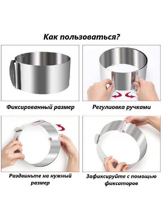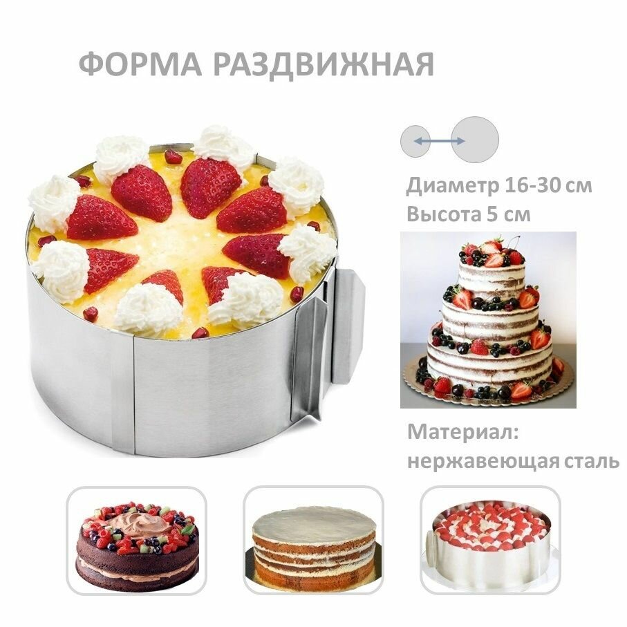 Кольцо для выпекания коржей, раздвижное/ диаметр 16 - 30 см, высота 5 см интересное: