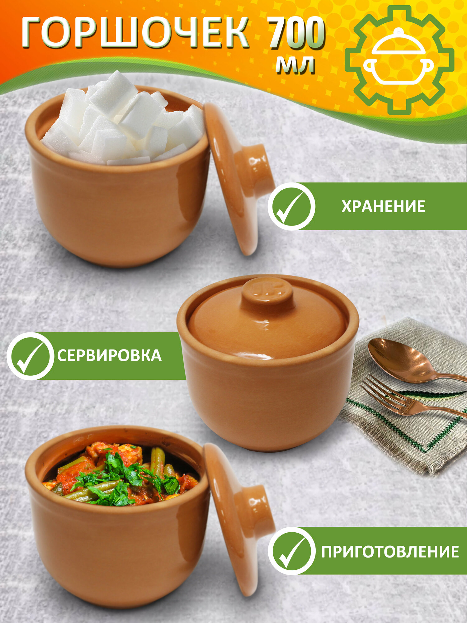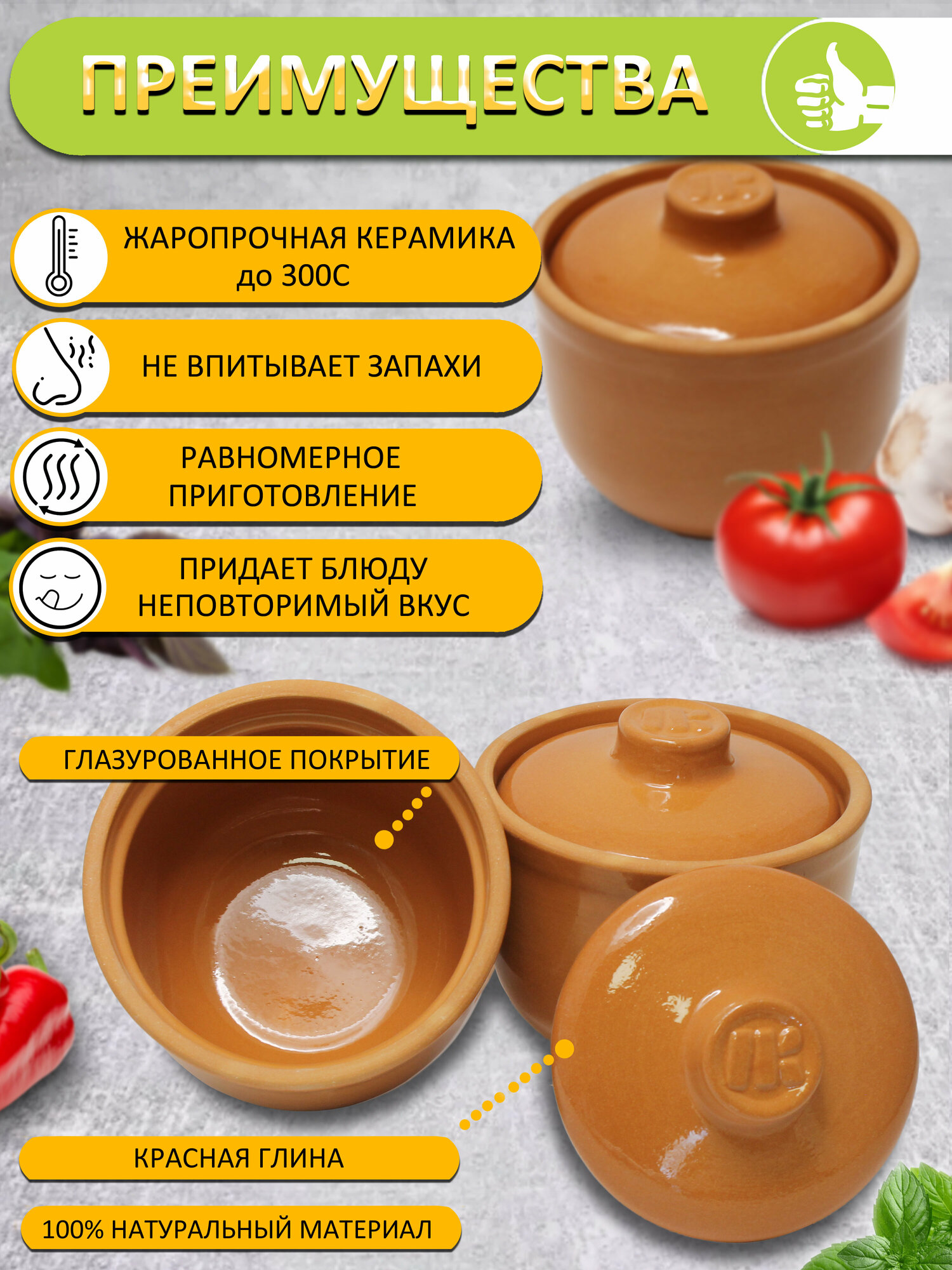 Горшочки для запекания в духовке, форма для выпечки, жульена, 0,7л, Терракот, набор 6шт, керамика