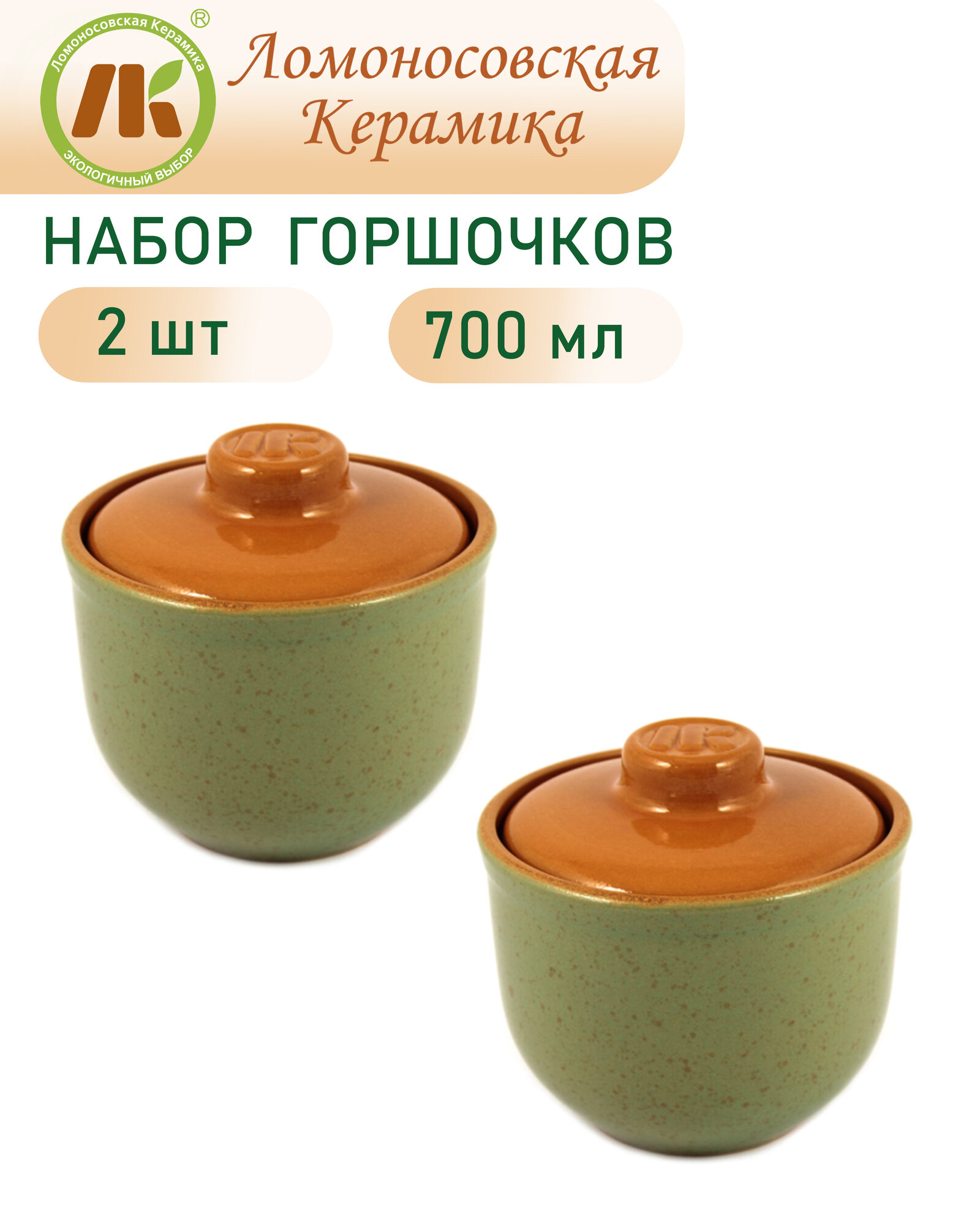 Набор 2-х Горшочков Ломоносовский 0,7л, зеленый интересное: