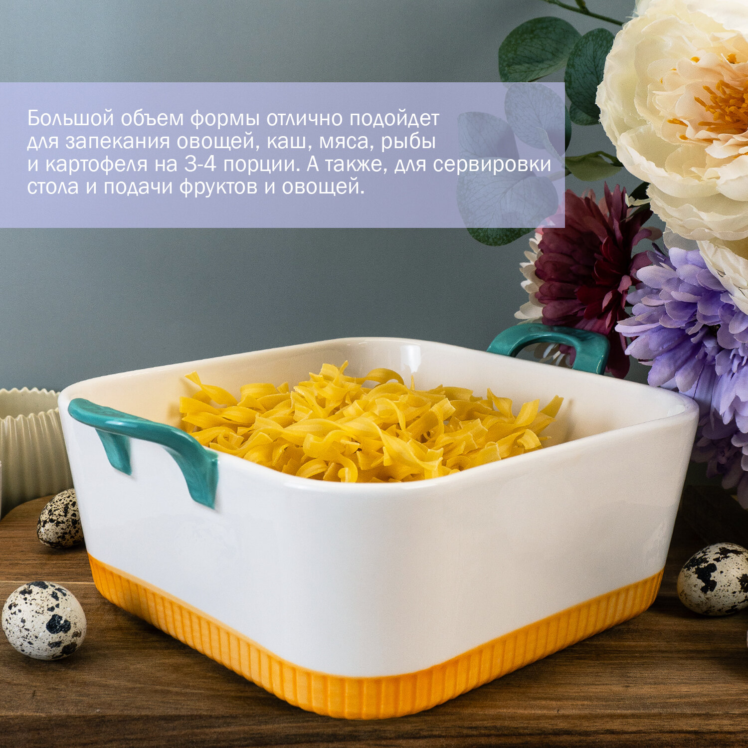 Квадратное блюдо для запекания Lenardi 27см, с ручками, фарфор