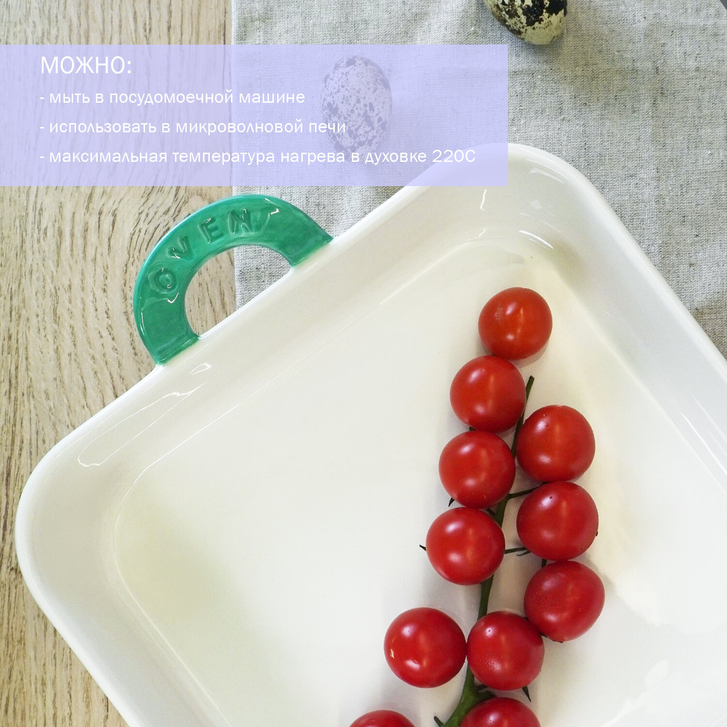 Прямоугольное блюдо для запекания Lenardi 36см, силиконовые ручки, фарфор