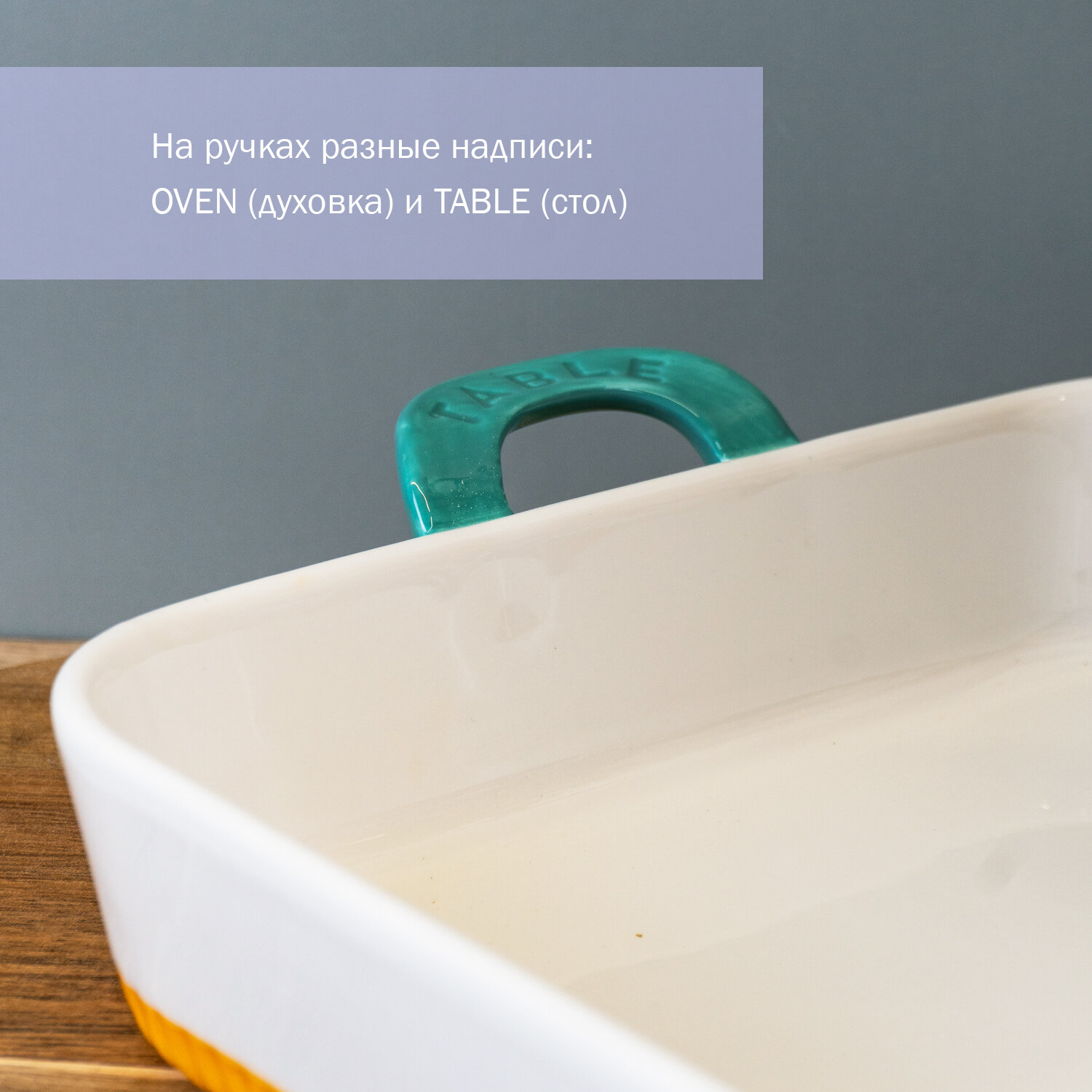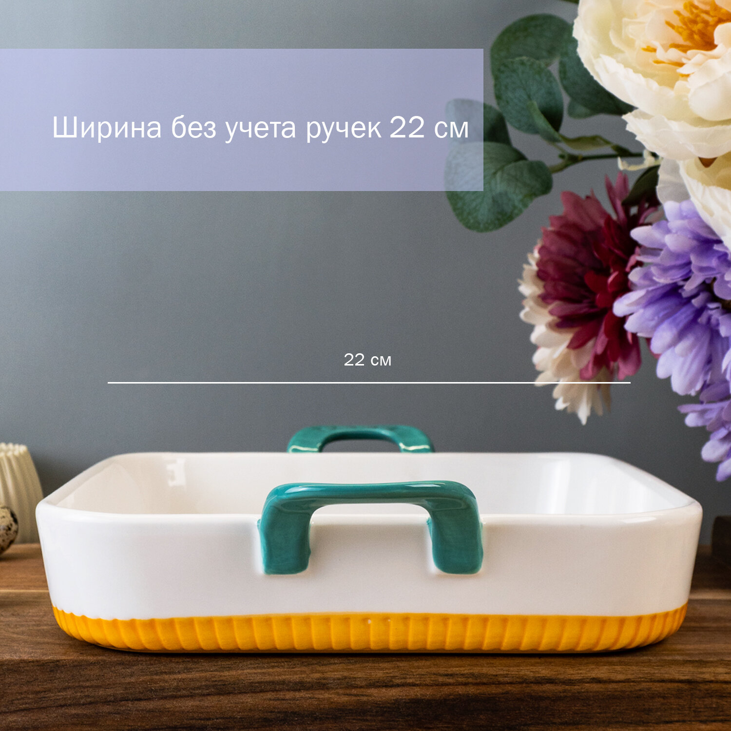 Блюдо для запекания прямоугольное фарфоровое Pie Town 27х17х6см с силиконовыми ручками в подарочной упаковке