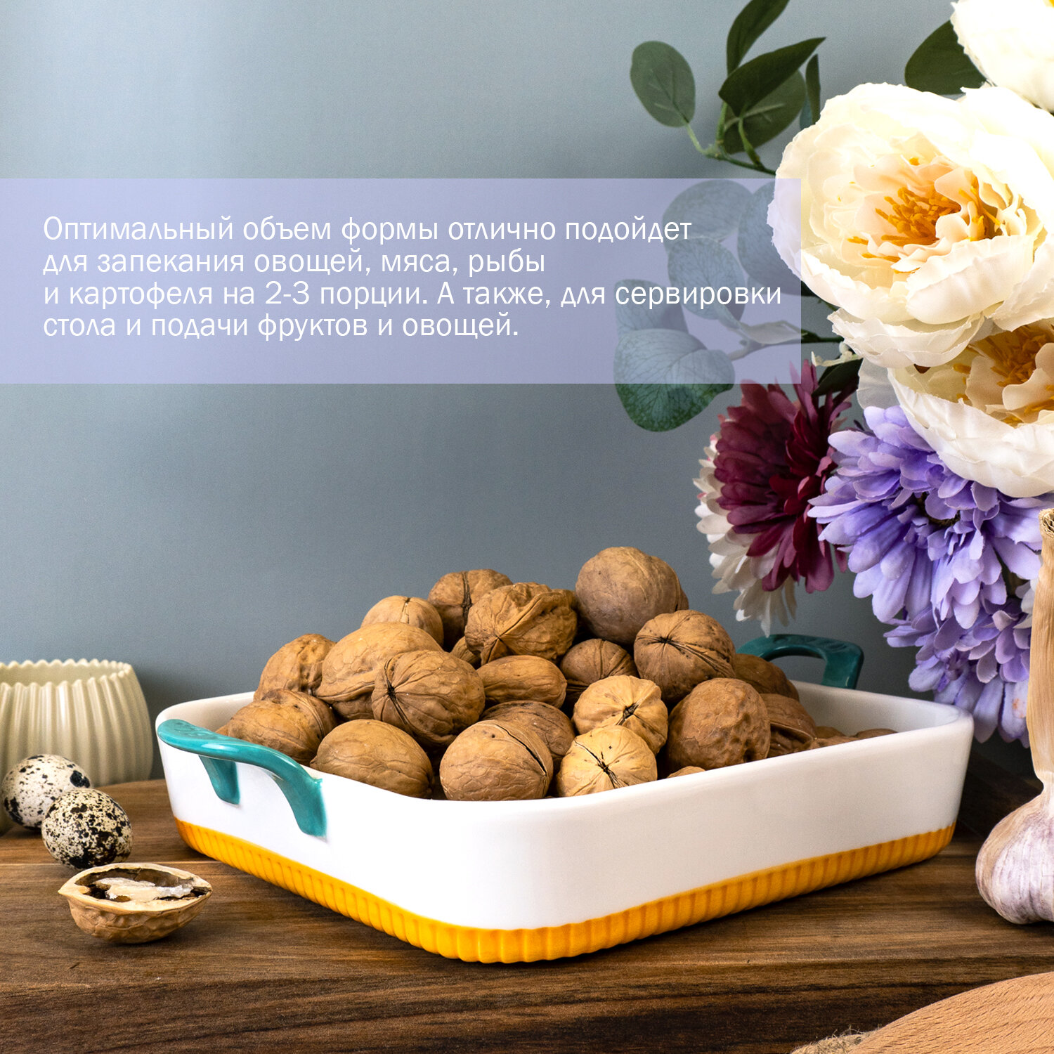 Квадратное блюдо для запекания Lenardi 27см, с ручками, фарфор