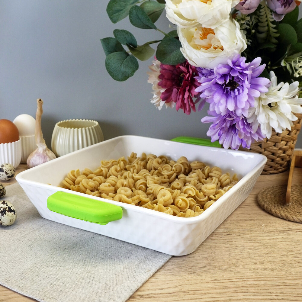 Прямоугольное блюдо для запекания Lenardi 36см, силиконовые ручки, фарфор