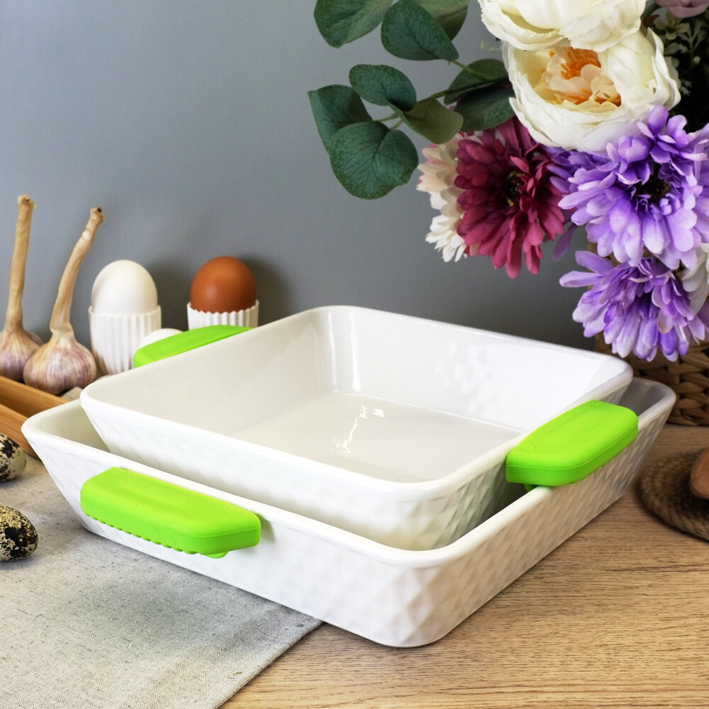 Квадратное блюдо "Инари" 25х21х6см для запекания фарфоровое с силиконывими ручками. Подарочная упаковка. Lenardi