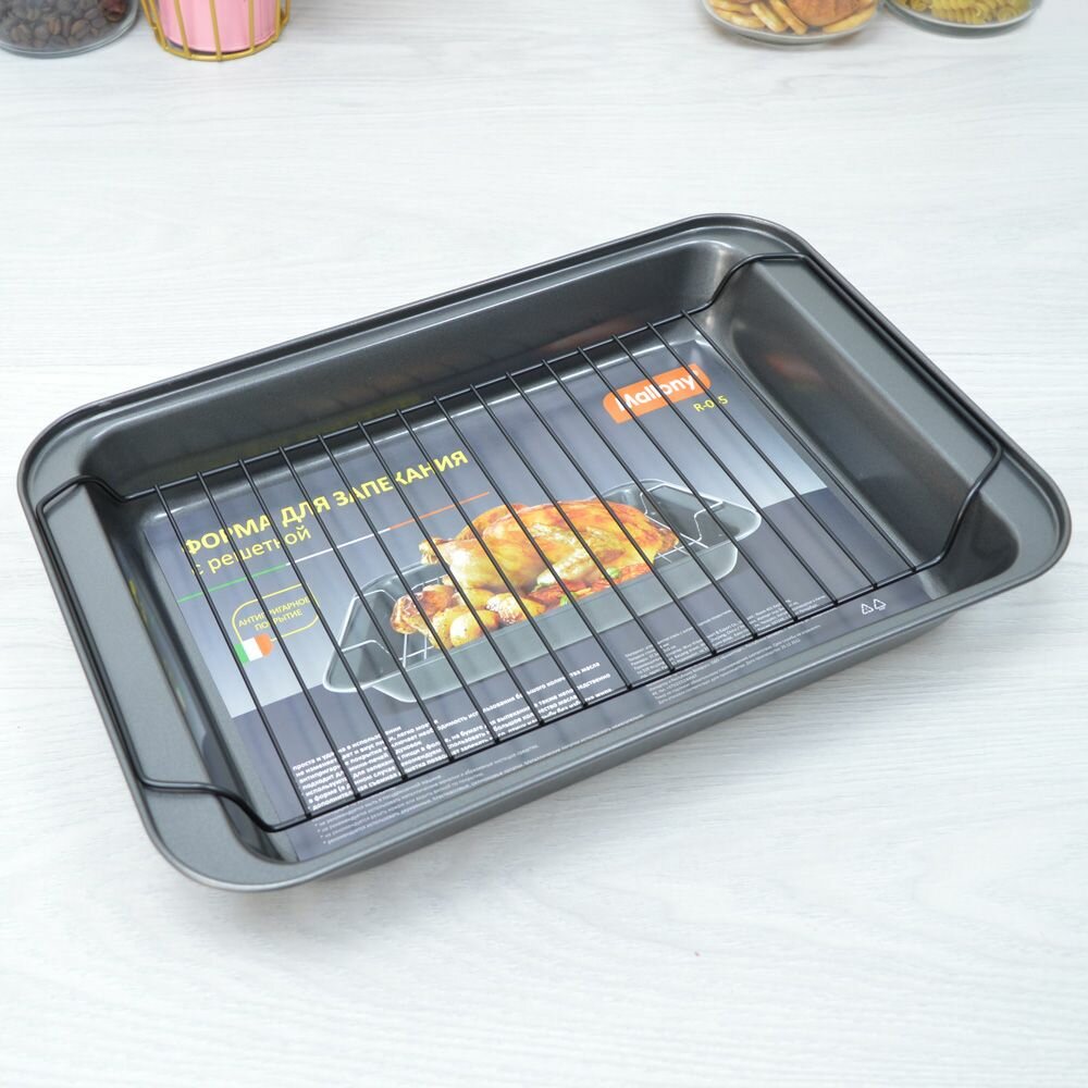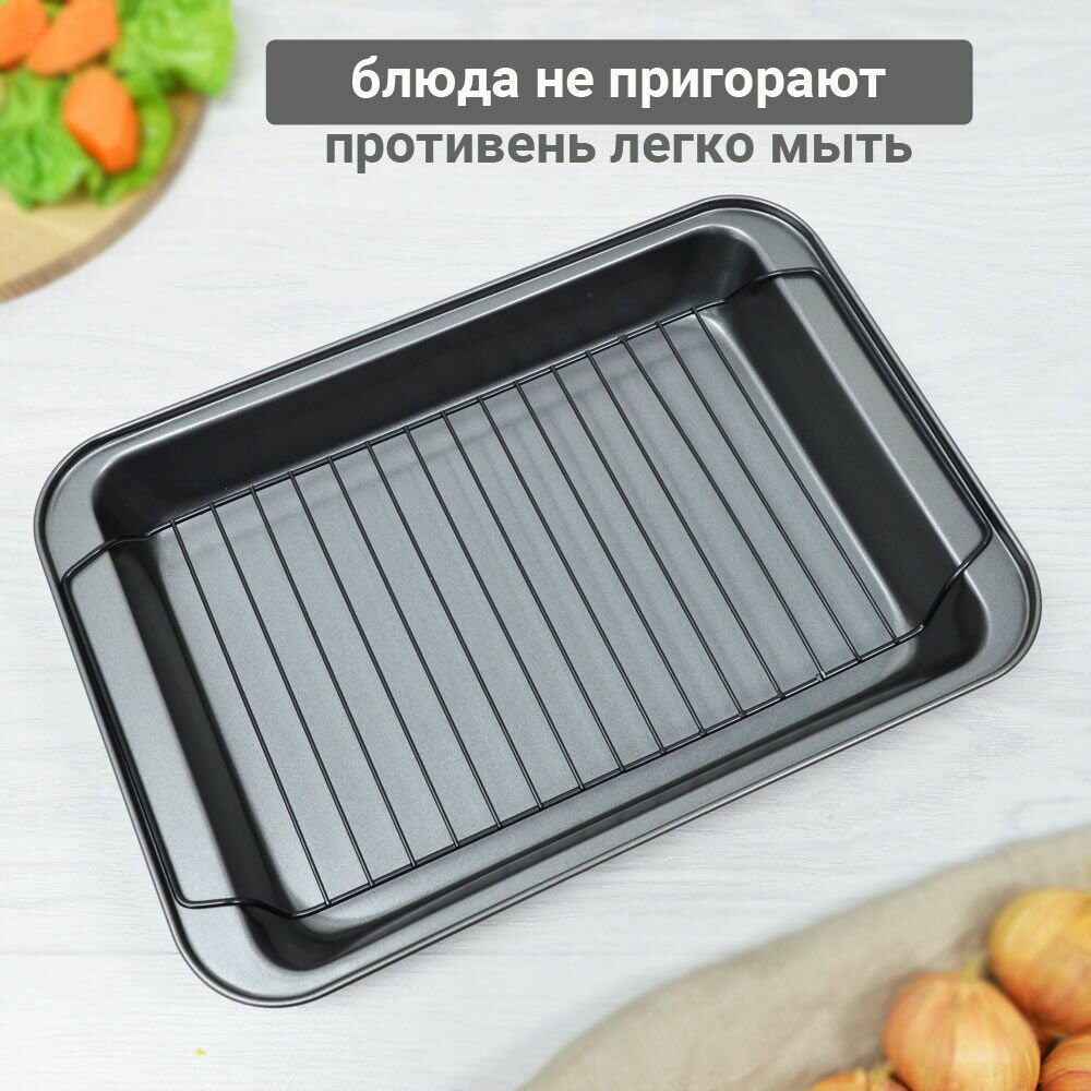 Купить Форма для запекания с решеткой-гриль, 37,5*25,5*5см противень для запекания с решеткой, форма для выпечки, для духовки
