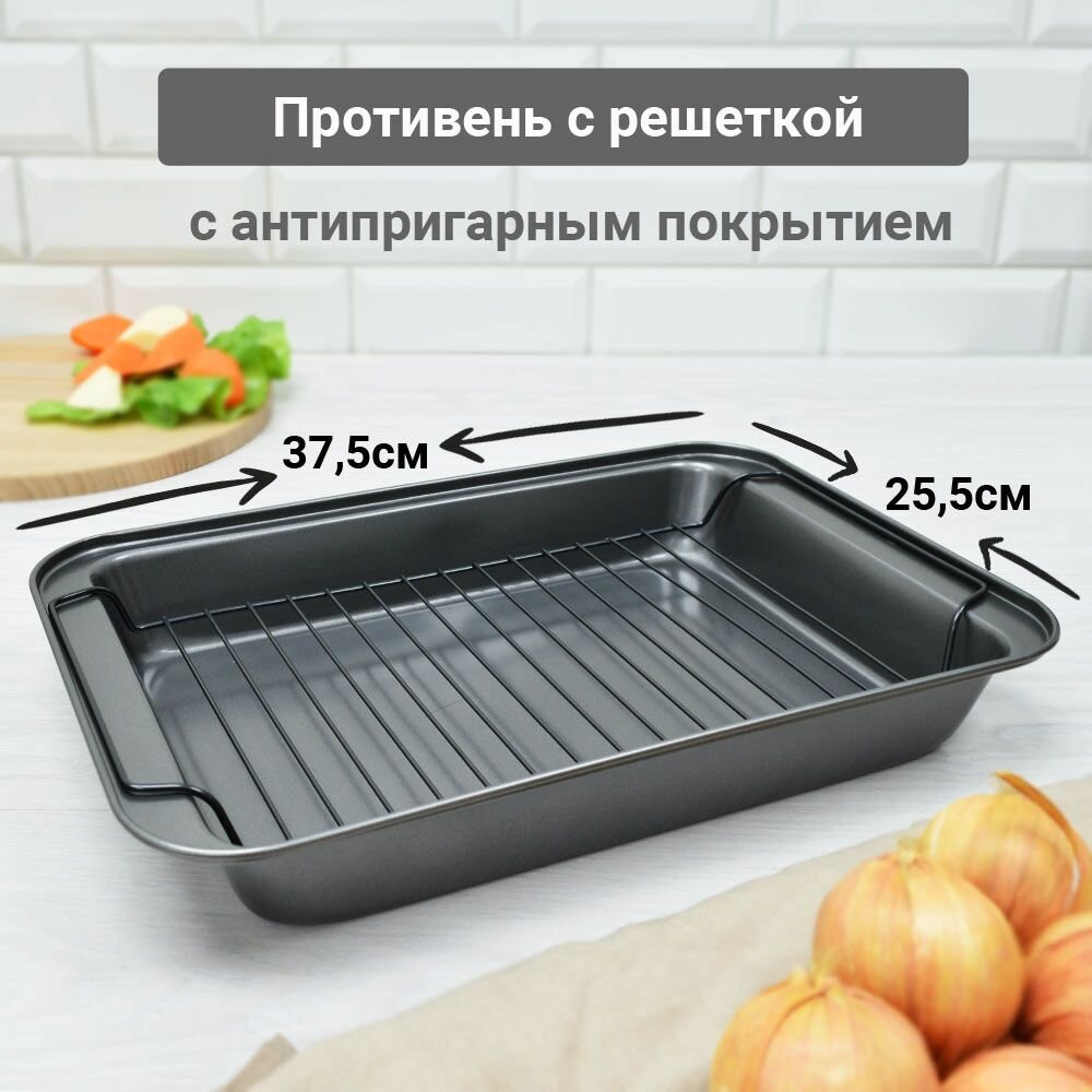 Форма для запекания с решеткой-гриль, 37,5*25,5*5см противень для запекания с решеткой, форма для выпечки, для духовки интересное: