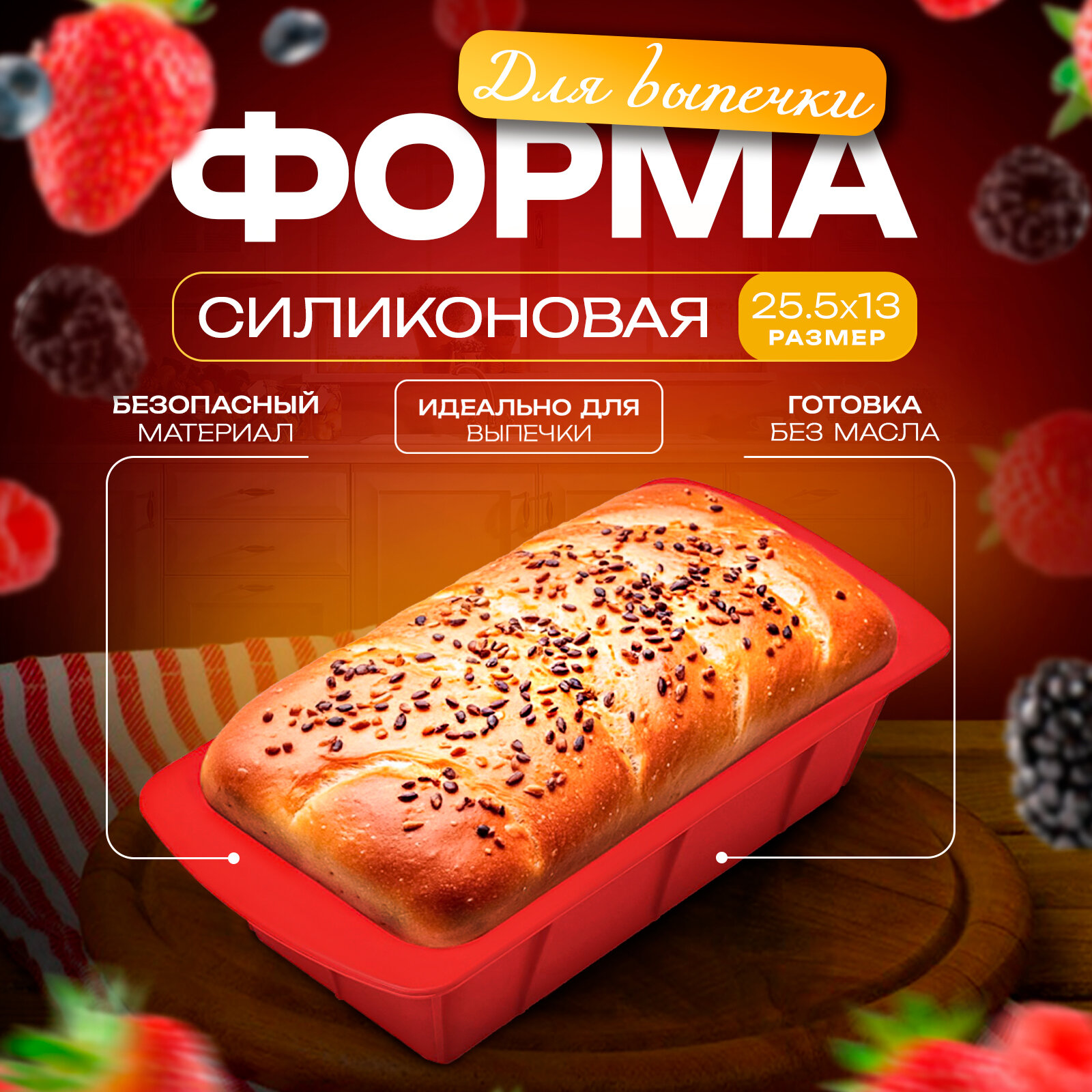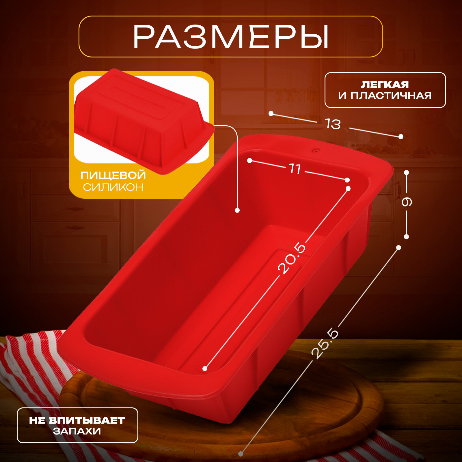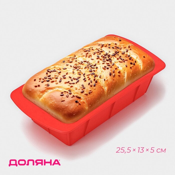Форма для выпечки Доляна «Хлеб», силикон, 25,5×13×5 см, внут. размер 20,5×11 см, цвет красный