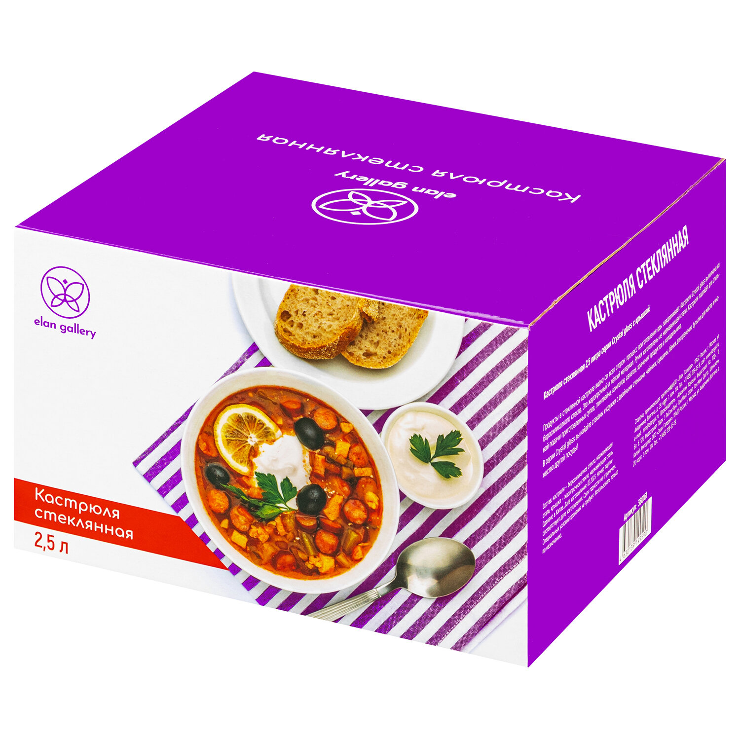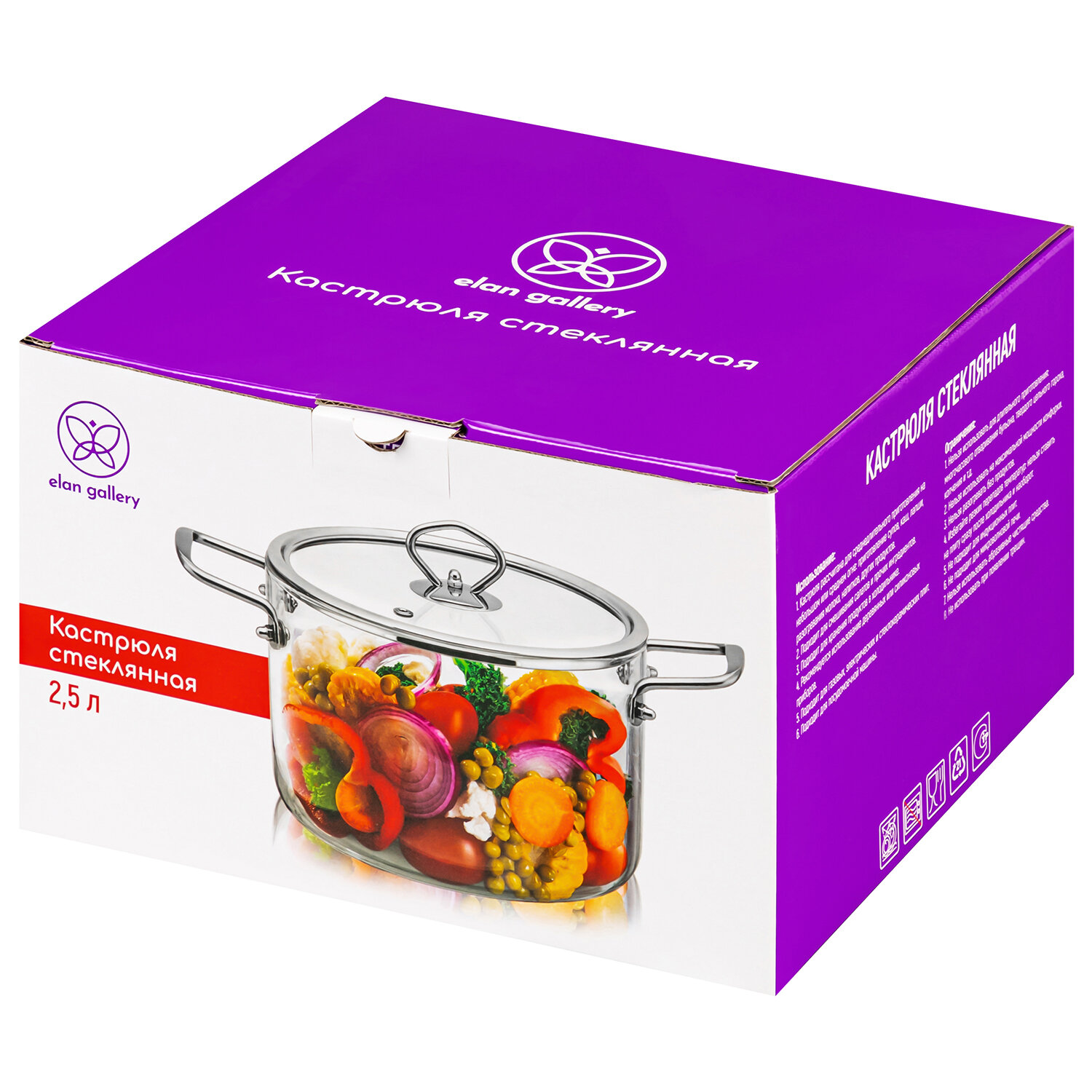 Купить Кастрюля стеклянная жаропрочная 2,5 л Elan Gallery "Crystal glass" 30*20*14,5 см, с крышкой