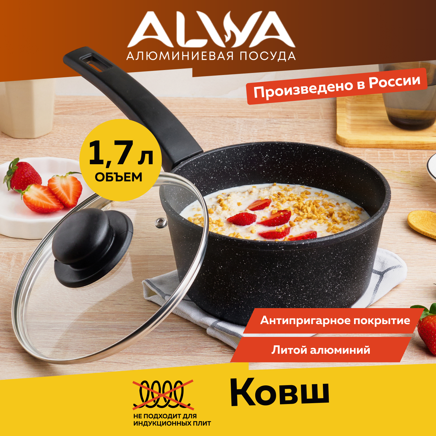 СохранитьКовш с крышкой ALWA 1,7 л литой с антипригарным покрытием интересное: