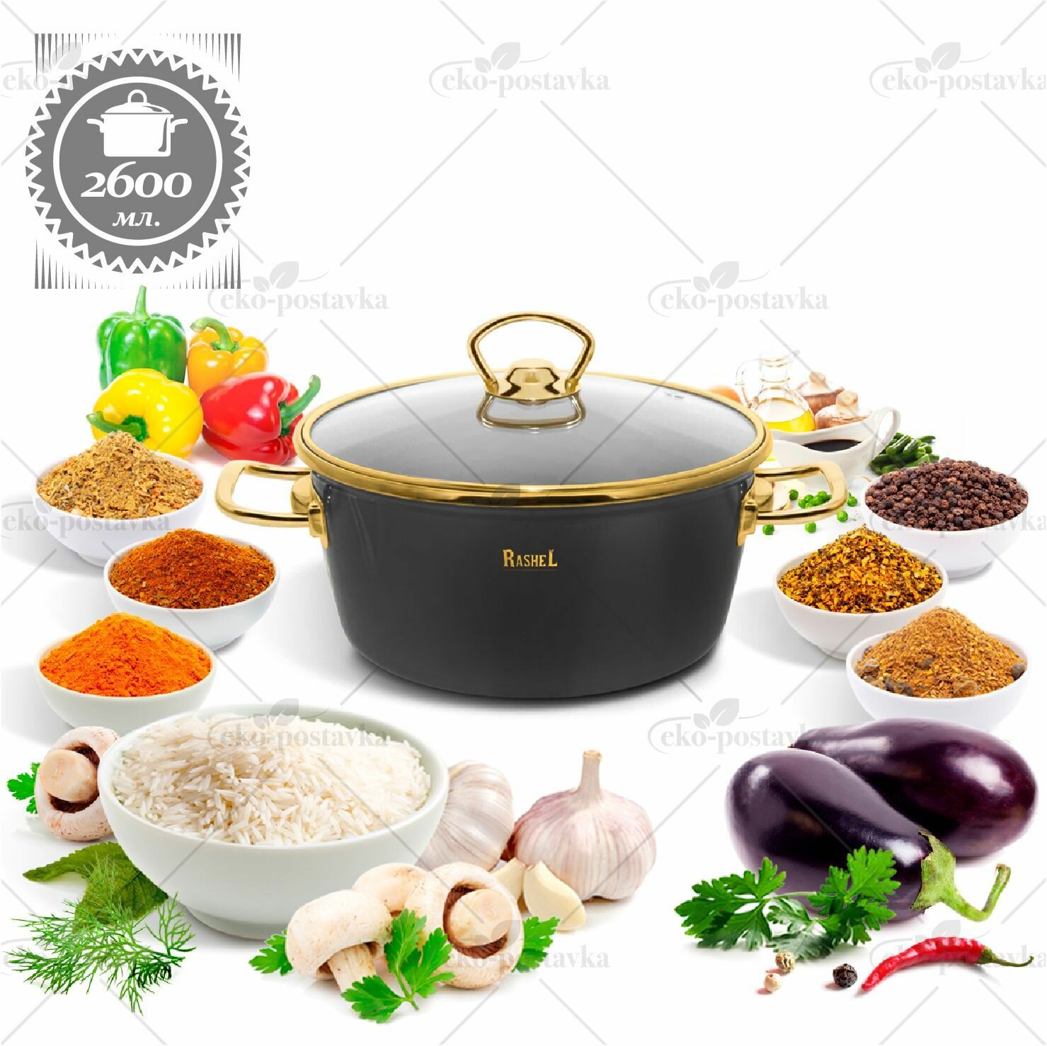 Купить Кастрюля Rashel Grand R0820 2,6л эмаль, ст.крышка, ручка золото; графитовый