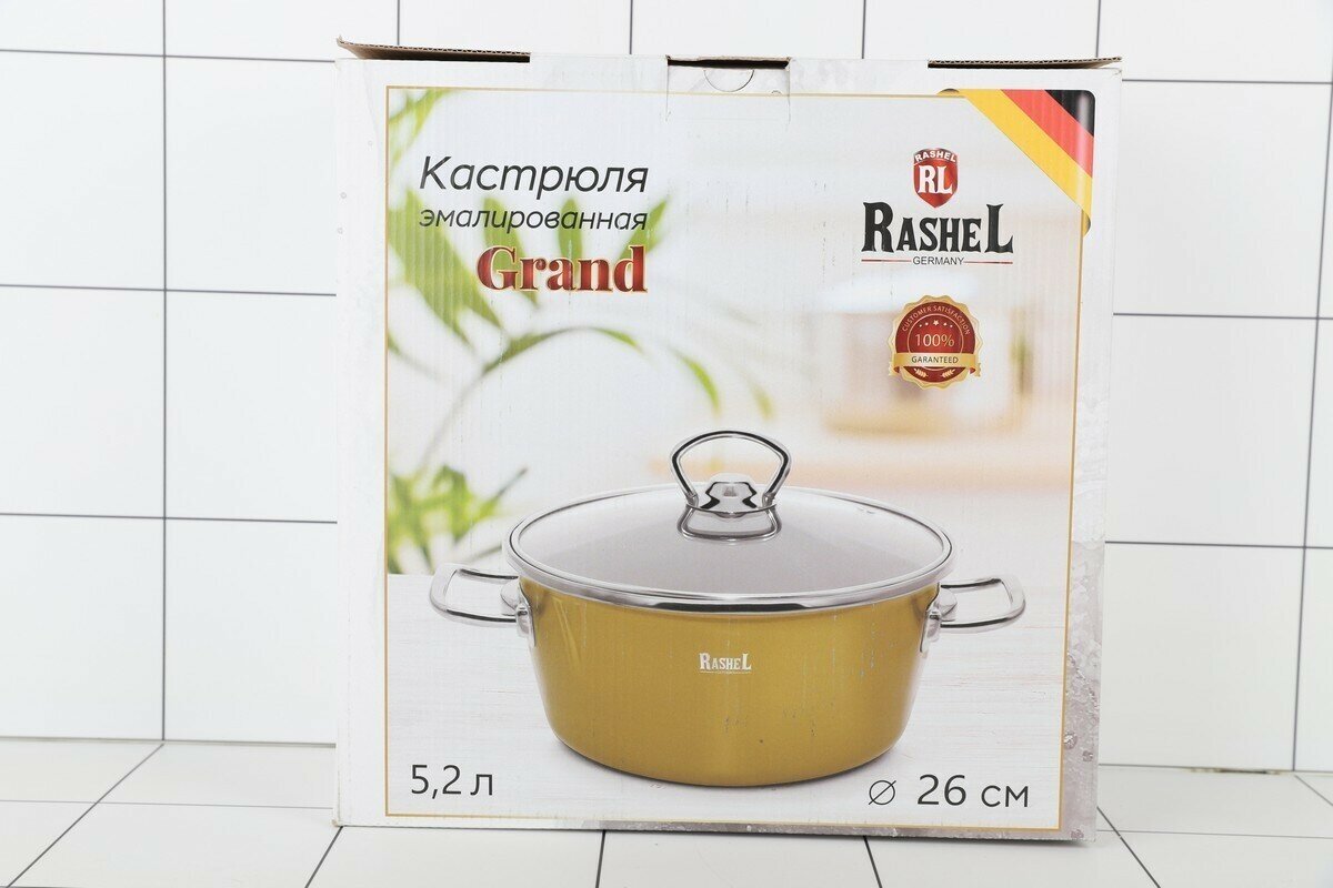 Кастрюля 5,2 л эмалированная Rashel со стеклянной крышкой 26см для всех типов плит