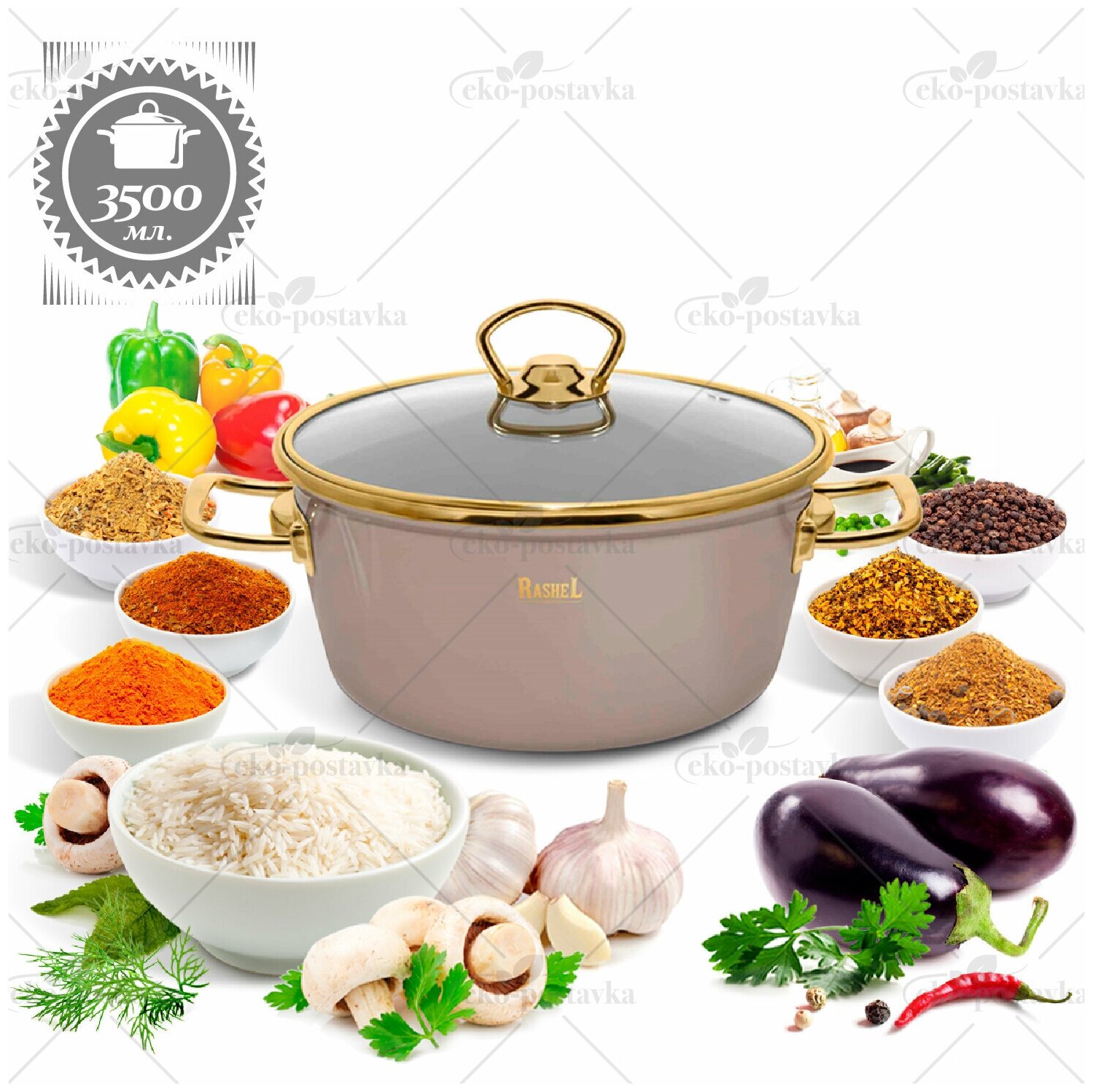 Купить Кастрюля эмалированная 3,5 л с крышкой 22 см Rashel для газовых электрических и индукционных плит