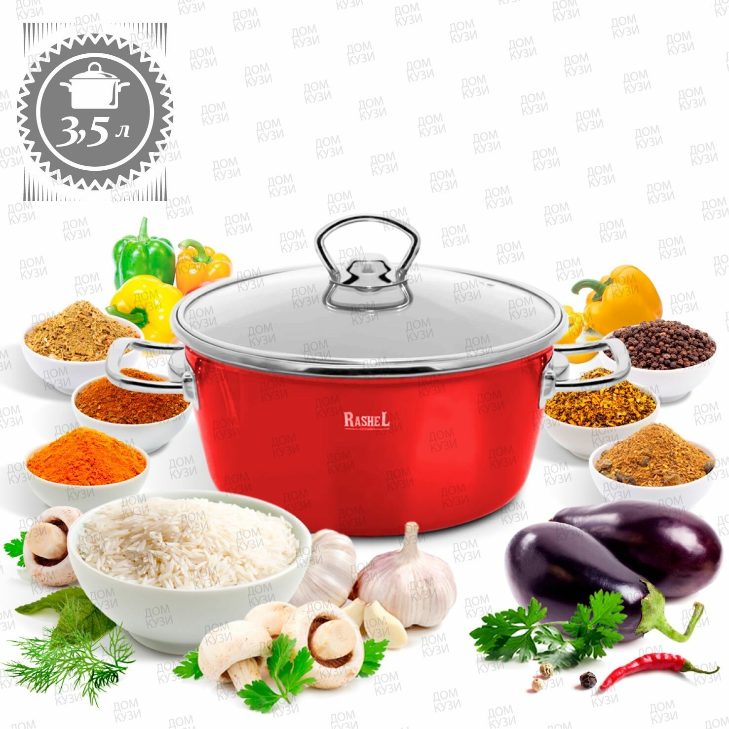 Купить Кастрюля эмалированная 3,5 л Rashel с крышкой 22 см с элементами "под серебро" красный