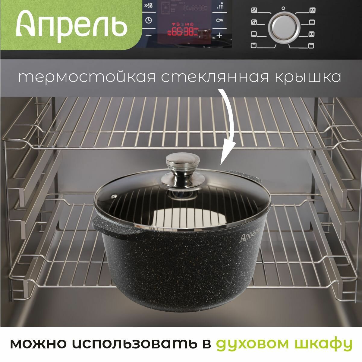 Кастрюля "Апрель" 5,8 л с антипригарным покрытием с крышкой, можно мыть в посудомоечной машине