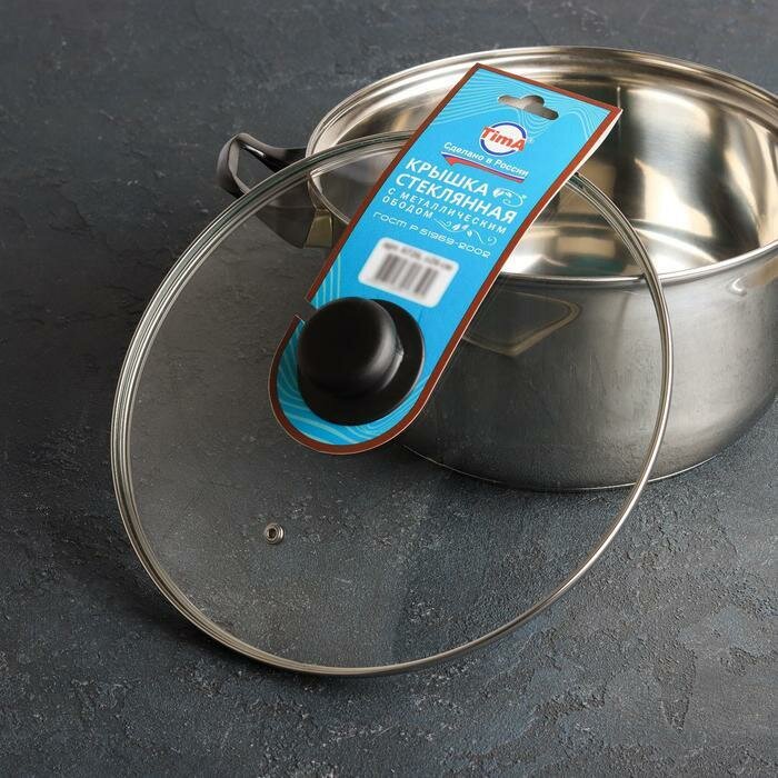 Стеклянная крышка с металлическим ободком TimA 22 см ручка (полипропилен)