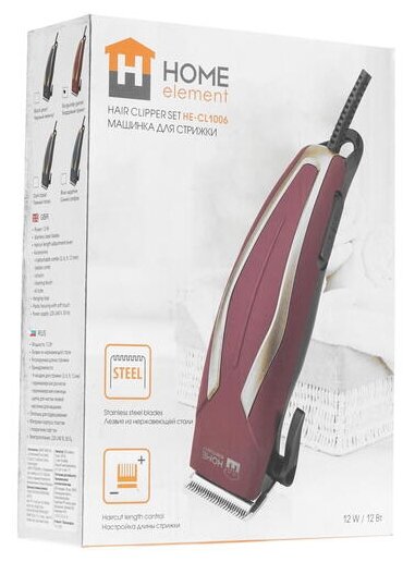 Ниже Вы можете прочитать отзывы на Машинка для стрижки Home Element HE-CL1006 бордовый гранат, ознакомится с подробными характеристиками, посмотреть интересные обзоры и фотографии на Машинка для стрижки Home Element HE-CL1006 бордовый гранат.