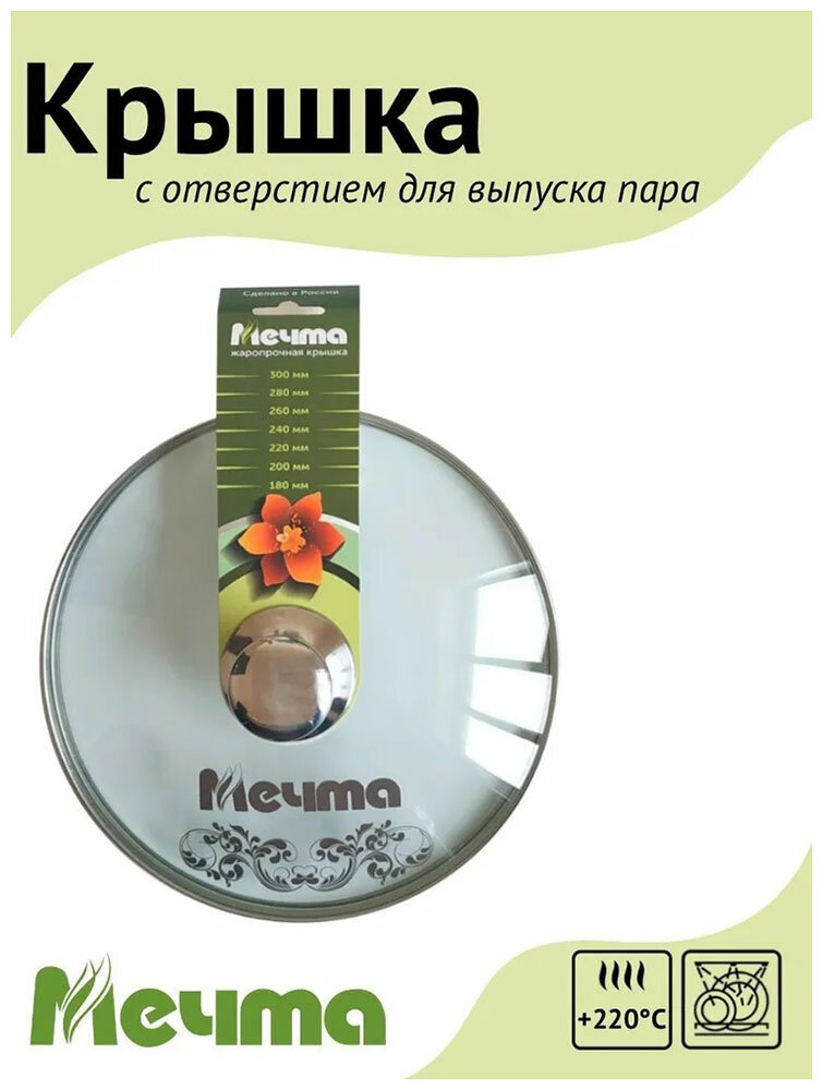 СохранитьСтеклянная крышка "Мечта" 22см с пароотводом для антипригарной посуды, можно мыть в посудомоечной машине интересное: