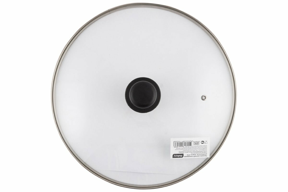 Купить Крышка MALLONY Крышка с ручкой стеклянная 32см., с метал/обод, паровыпуск, низ. (987025)