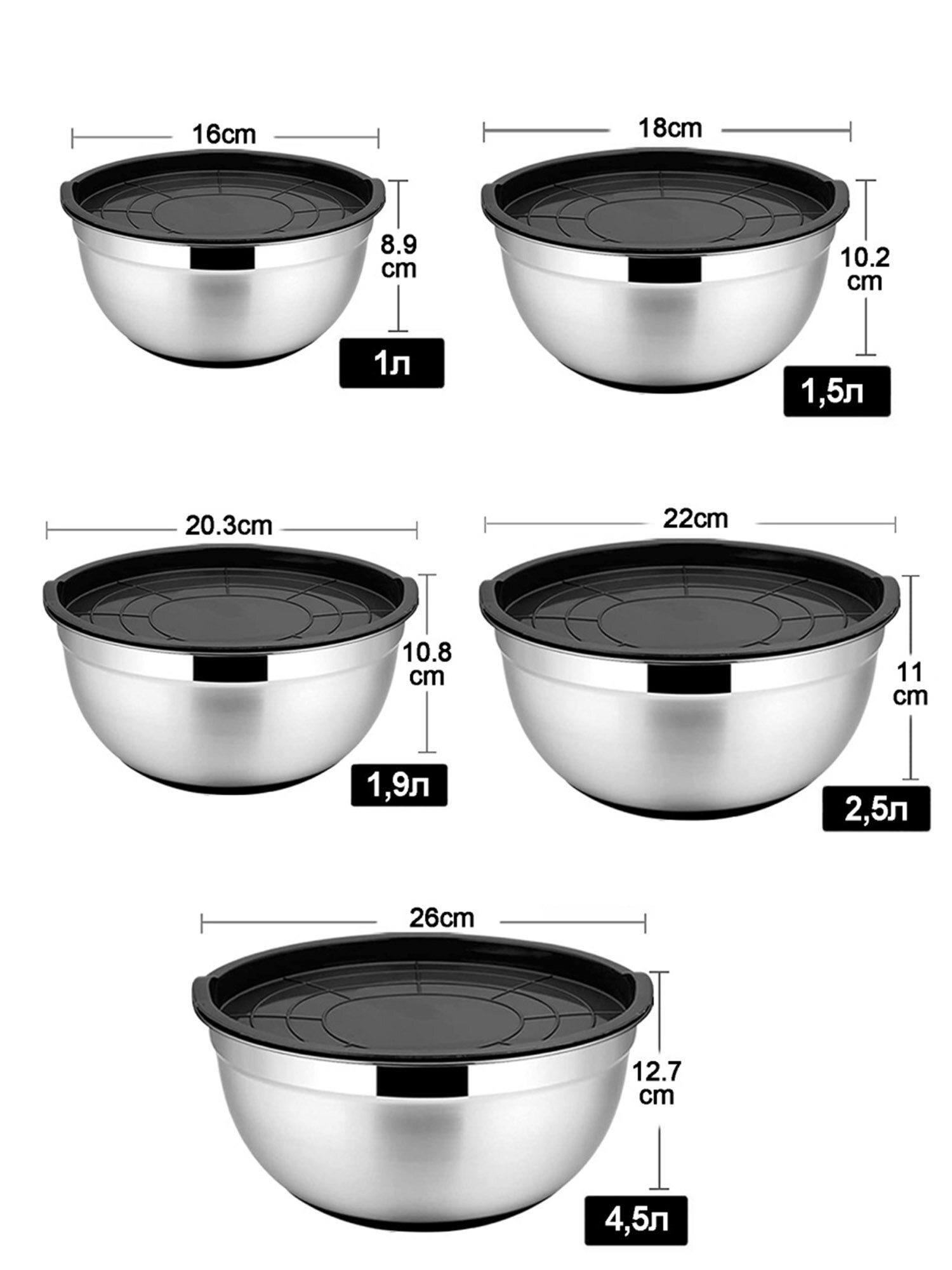 Набор мисок с крышками из нержавеющей стали 5 шт интересное: