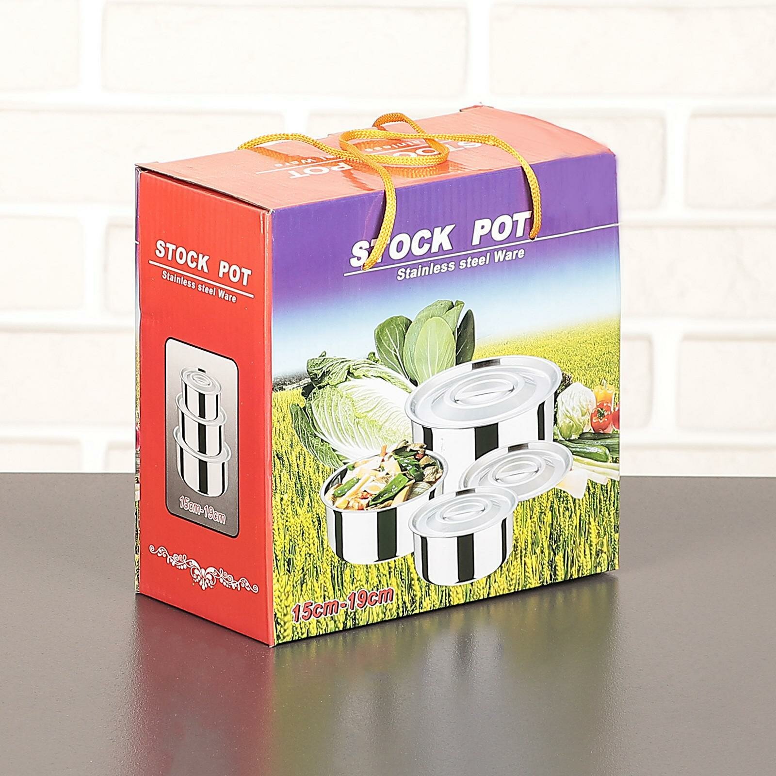 Набор посуды из нержавеющей стали с крышками 3 шт: 0,75 л, 1 л, 1,45 л, d=15 см, d=16,5 см, 18,5 см