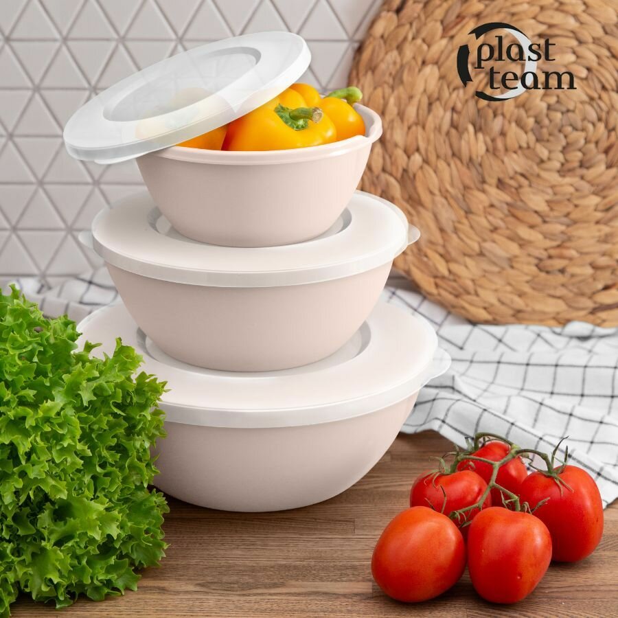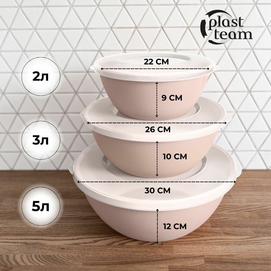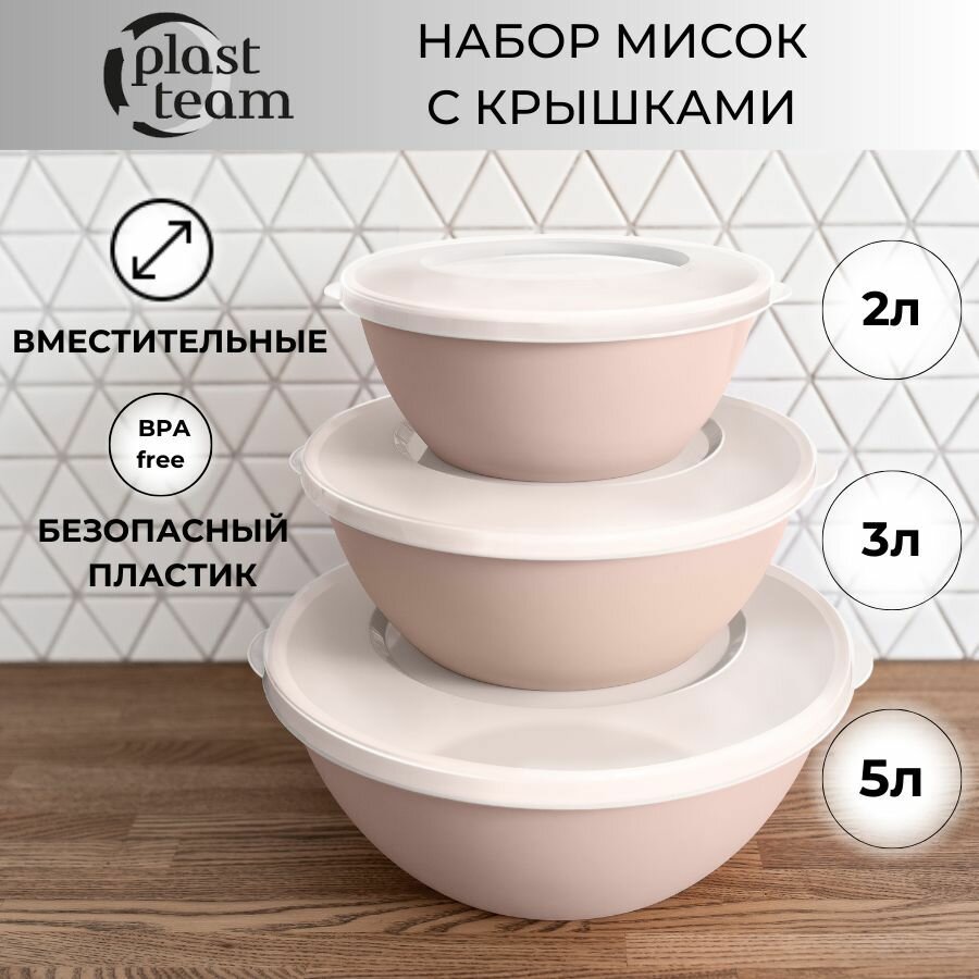 Купить Набор мисок с крышками 3шт (5л,3л,2л) набор салатников для кухни пластиковая миска