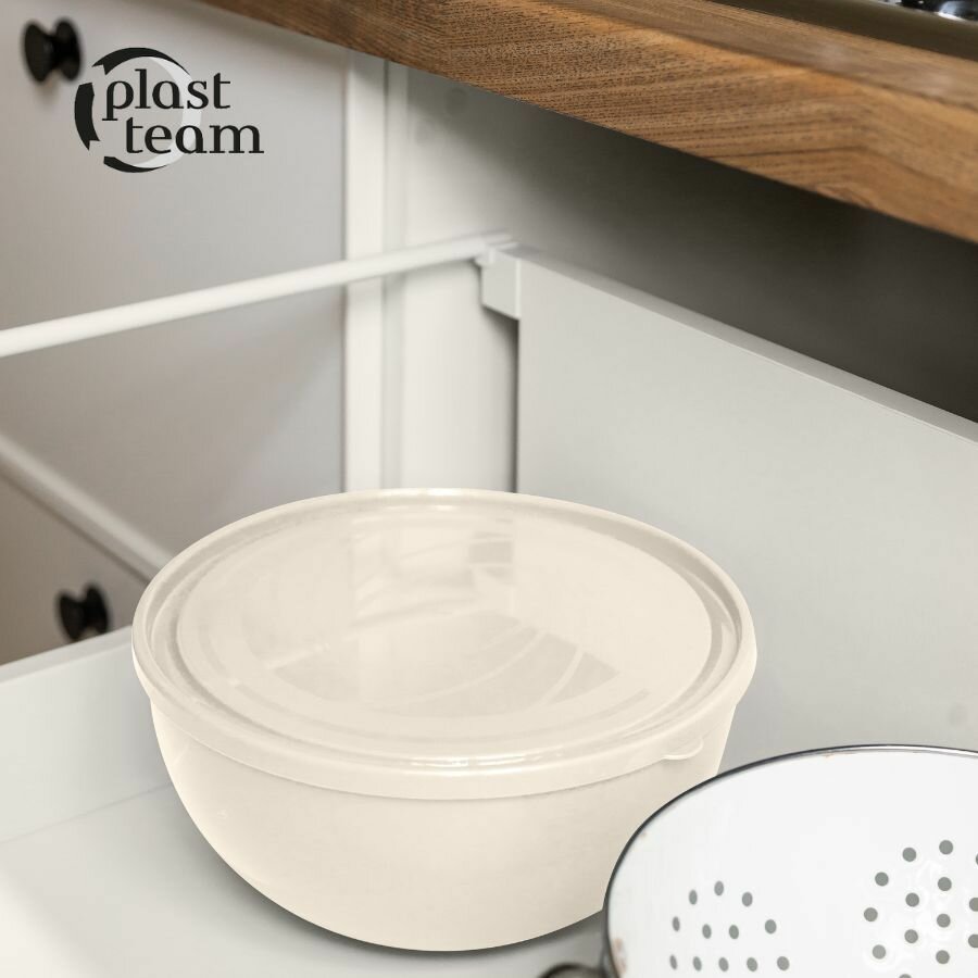 Миска, Kuchenland, 3/4,5 л, 2 шт, с крышкой, антискользящее дно, бежевая, Terra new