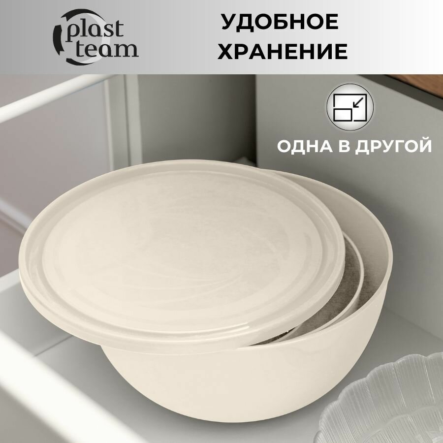 Набор мисок с крышками 3шт (5л,3л,2л) набор салатников для кухни пластиковая миска