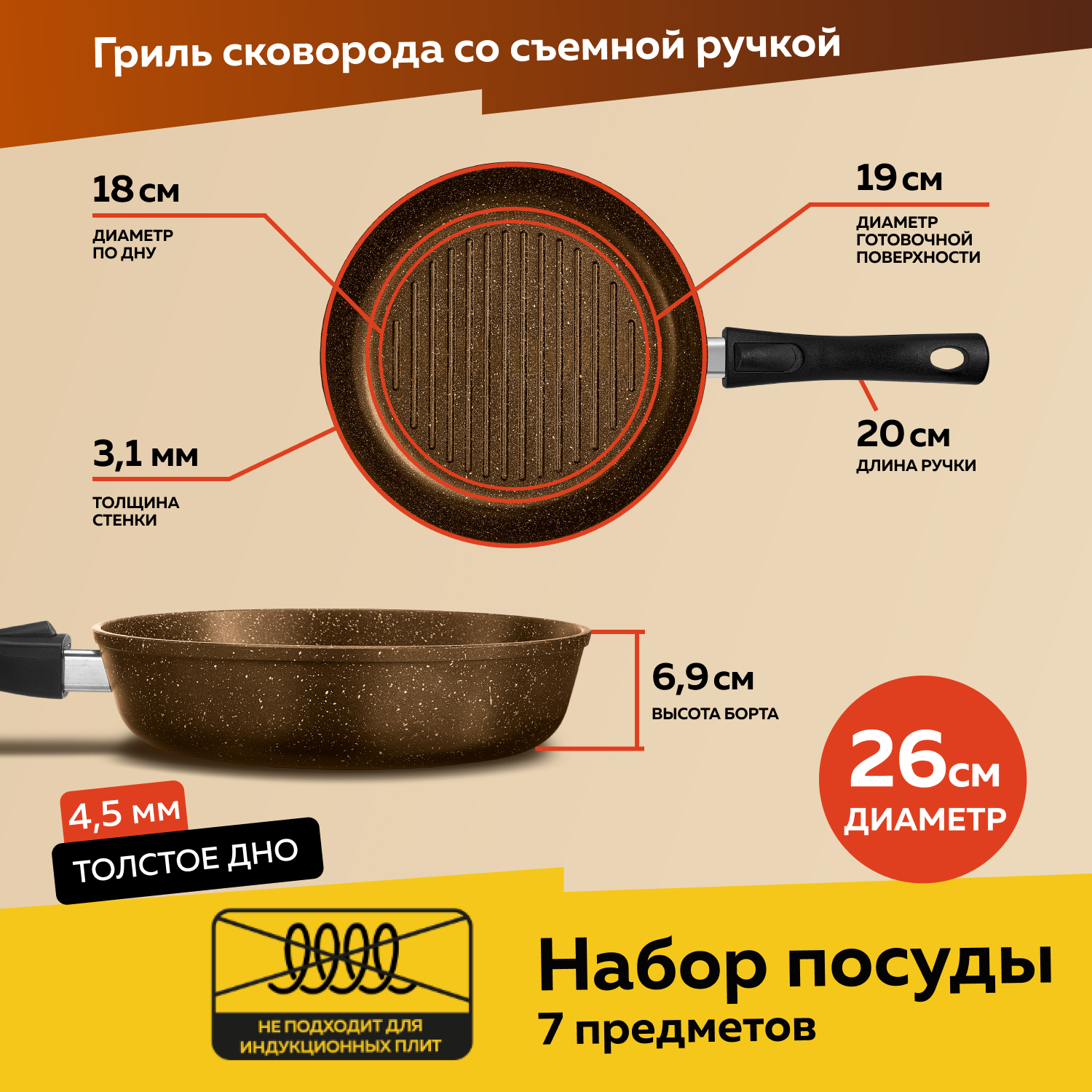 Набор посуды для приготовления ALWA сковороды и кастрюля с крышкой цвет мрамор