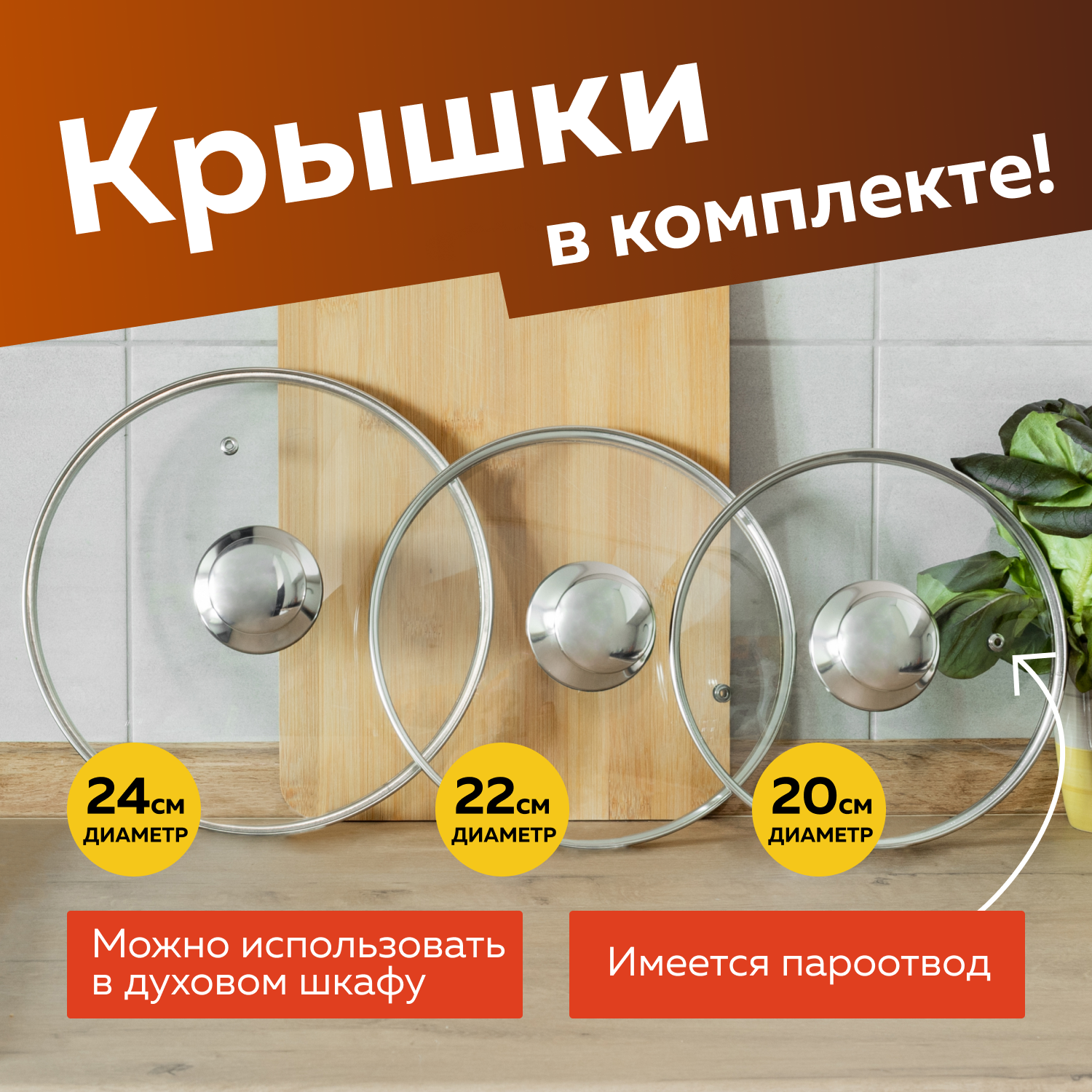 | Комплектация | кастрюли 2, 3 и 4 литра, крышки 20, 22 и 24 см |