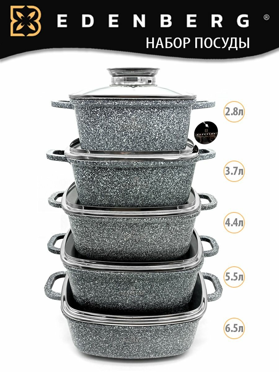 Набор посуды Edenberg EB-3990 с мраморным покрытием 14 предметов