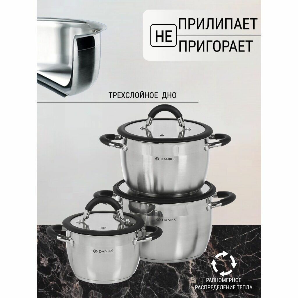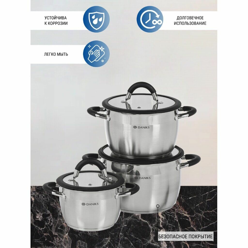 Купить Набор посуды нерж, 6 пр, кастрюли 1.9, 3.7, 4.9 л, индукц, Daniks, Орландо, GS-01435-6SE