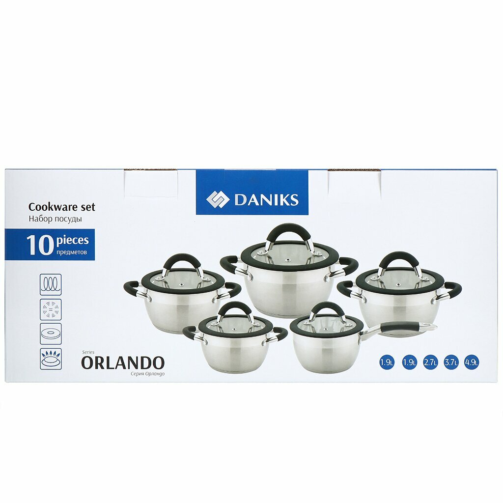 Набор посуды нерж, 6 пр, кастрюли 1.9, 3.7, 4.9 л, индукц, Daniks, Орландо, GS-01435-6SE