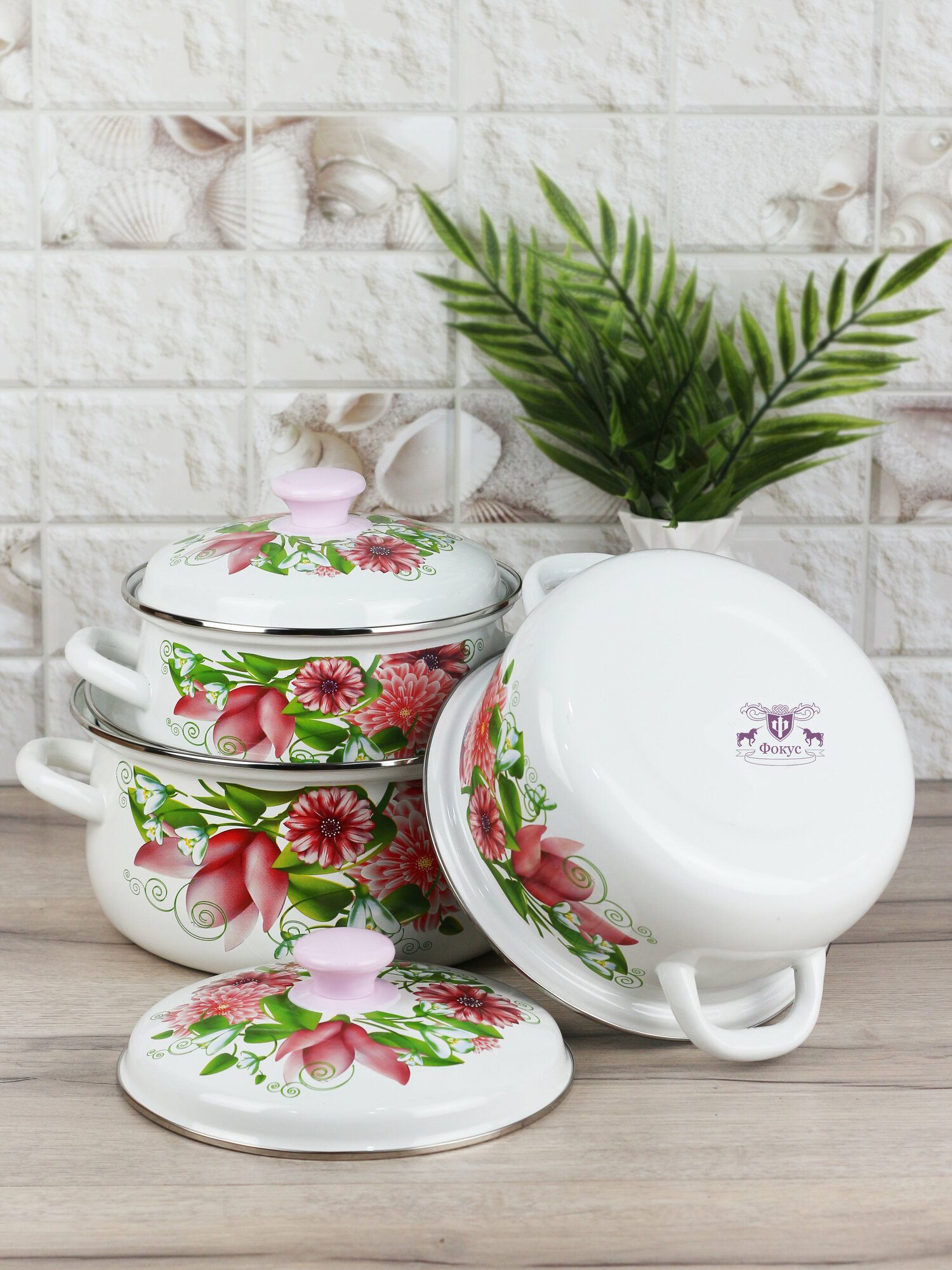 Набор кастрюль 3 шт с чайником "Весна белый" (2л, 3л, 4л) Керченская эмаль интересное: