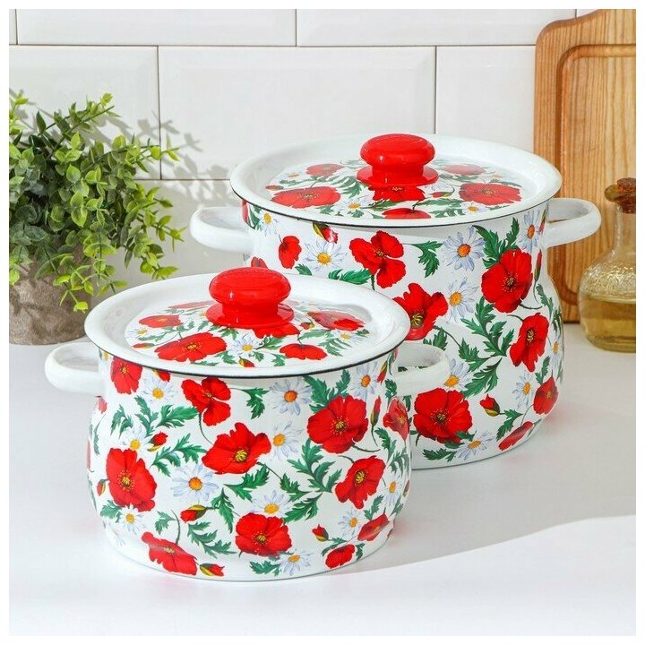 Купить Сибирские товары Набор кастрюль «Маки сибирские», 2 предмета: 4 л, 5,5 л, эмалированные крышки, индукция