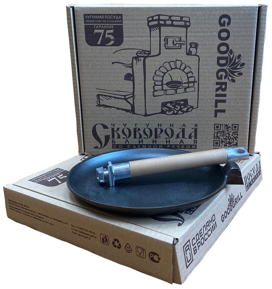 Сковорода чугунная блинная GOODGRILL 24х2см со съемной ручкой интересное: