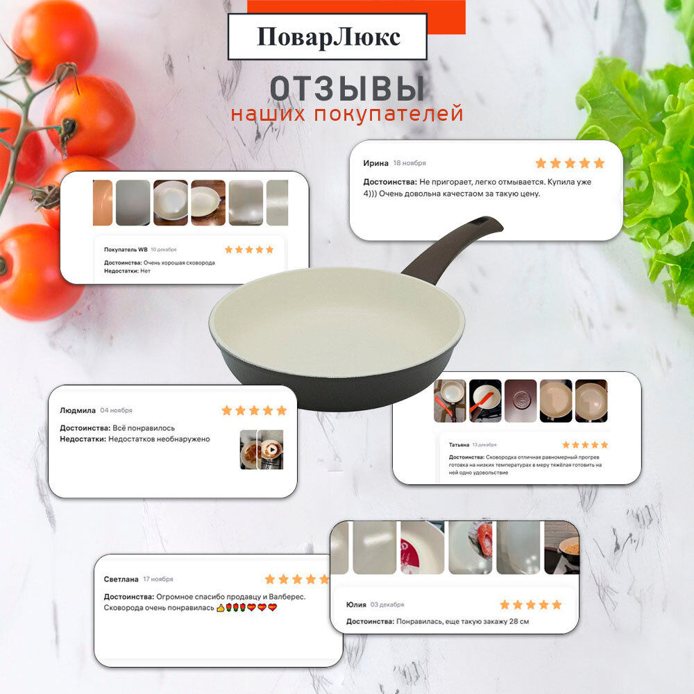 Сковорода литая с керамическим покрытием, Повар Люкс, 22см интересное: