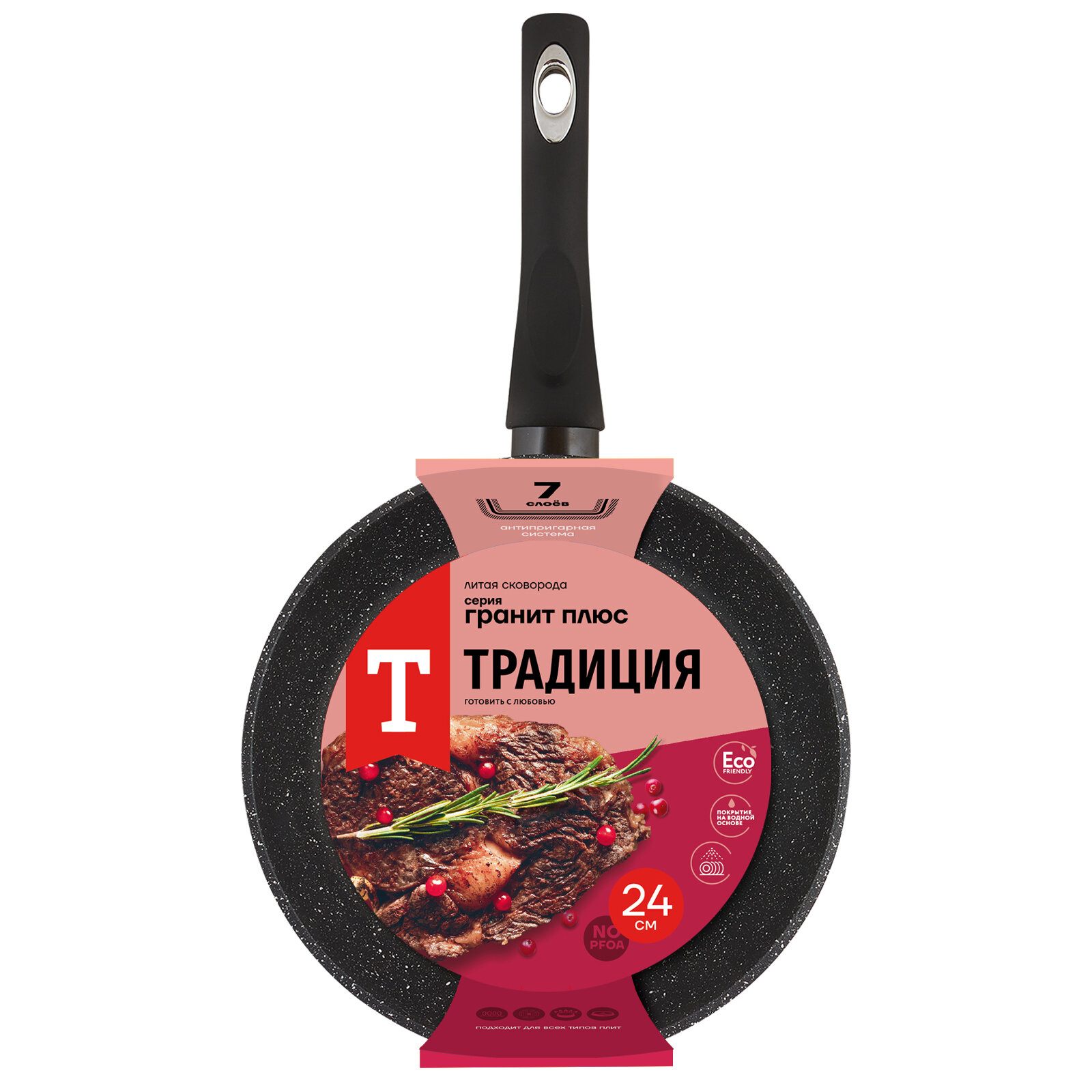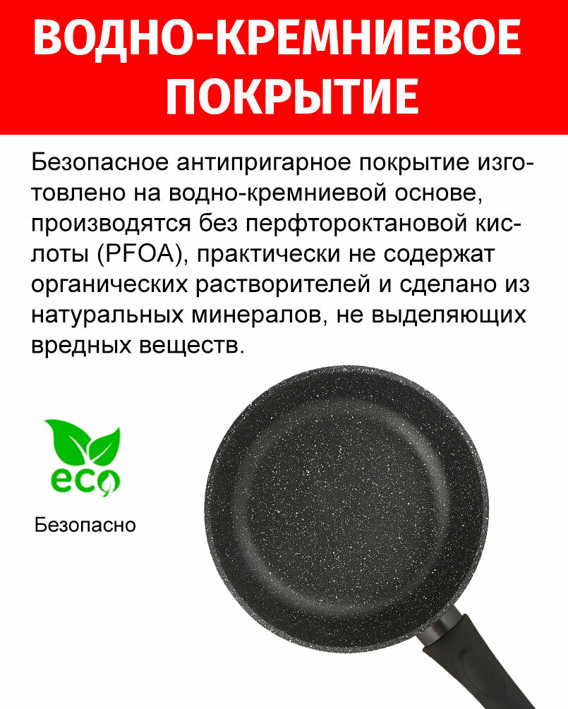 Сковорода 24см с крышкой ТМ традиция Гранит плюс индукция каменное покрытие, Россия + Лопатка в подарок интересное: