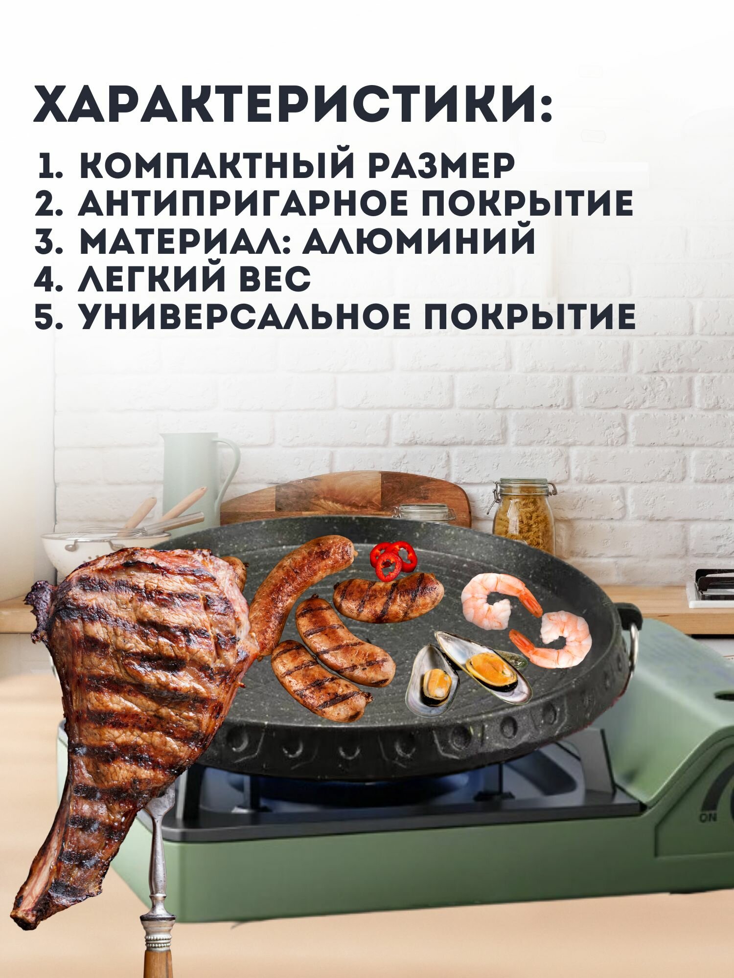 Сковорода-гриль жаровня для газовых плит 32 см интересное: