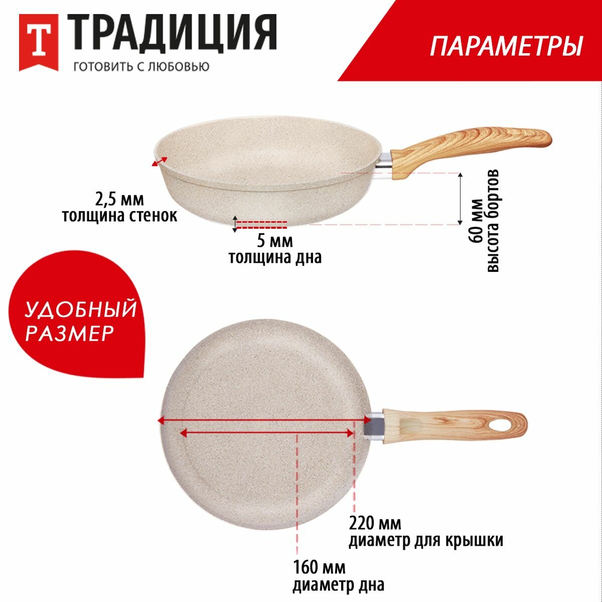 Сковорода Традиция Ваниль 22см (ТВ2221)