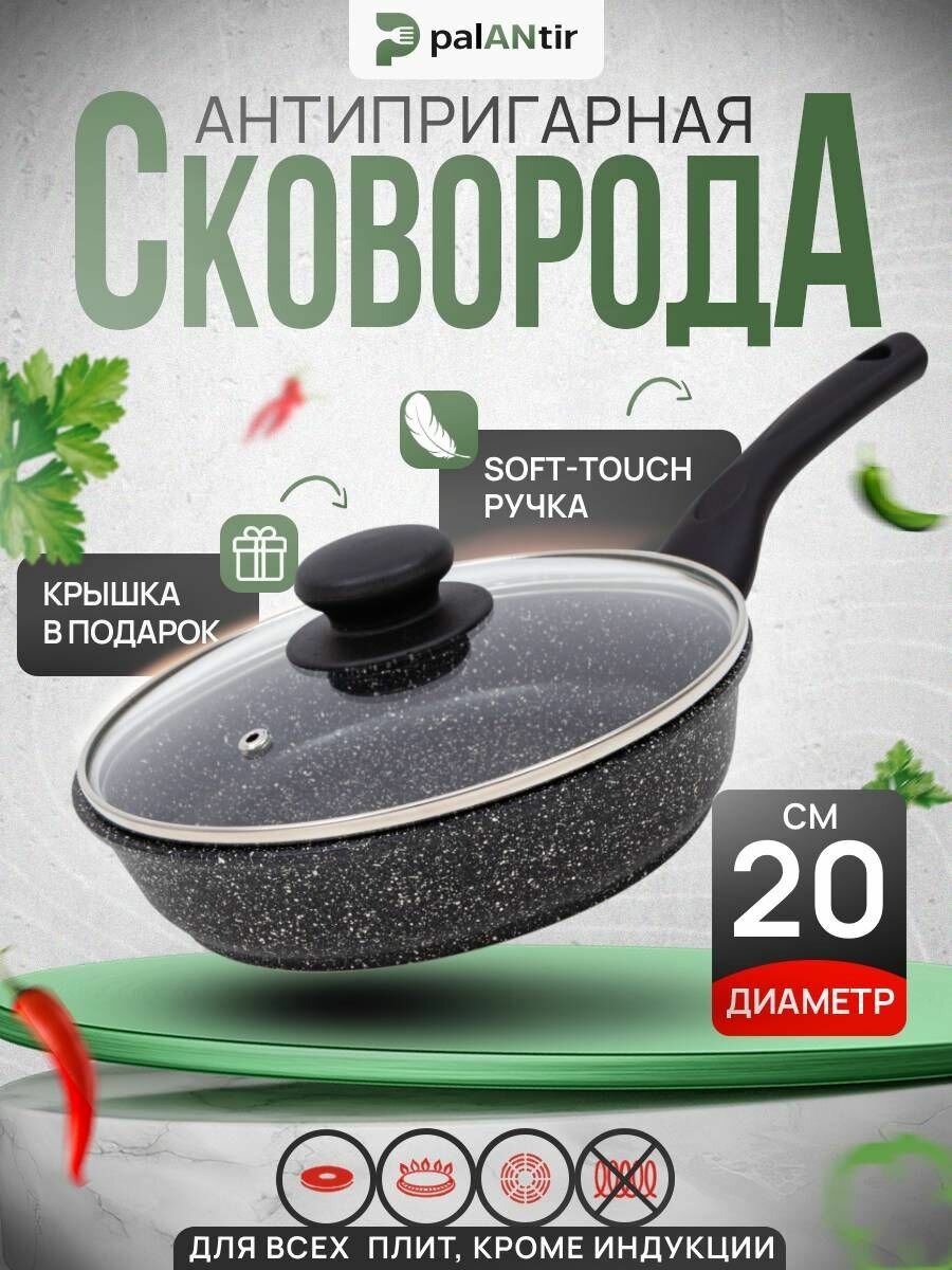 PALANTIR Сковорода глубокая тяжелая антипригарная с крышкой 20 см интересное: